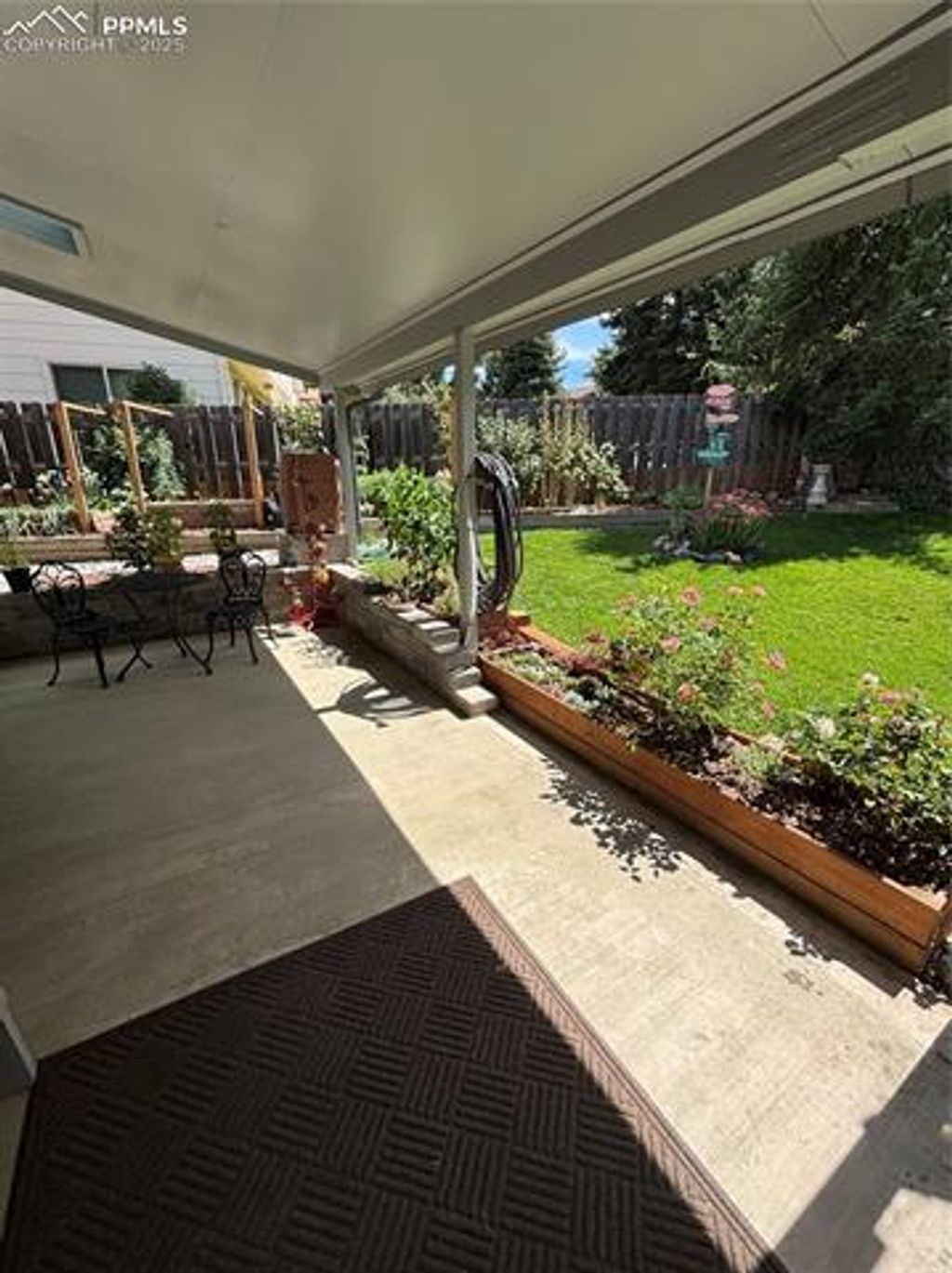 Enjoy visiting this light and bright well maintained home with quality newer windows and Decra steel roof for long life. Large Garden level basement has SO many possibilities and equity options! Perfect for aging parents/boomerang kids quarters or home school classroom, crafting/sewing/hobbies or large rec room/man cave/video/music room or even plenty of space for 4th bedroom & 2nd family room! Water and drain in mechanical room so possible to put in another bath if you like. Use your imagination down here! Spacious living areas with beautiful blonde maple floors on main and upper levels & ceramic tile on lower level with radiant floor heat in family room with gas fireplace to cozy up the winters. Kitchen with large work surface for baking, serving, or eating bar with walkout to huge covered patio with skylights for al fresco entertaining, BBQ's or morning coffee. The back yard will thrill you with the ultimate privacy and lushness where you can take a hammock nap, read or grow your own veggies and flowers in the raised beds that deer can't reach. There is RV parking inside and outside the fenced yard & even a 30AMP RV hookup for visitors. This home has lots of storage and closet space, plus storage shed in backyard, and plenty of room for a another studio or man cave shed in back as well, or just additional parking. Front yard has a clover lawn & mulch areas for low maintenance and lots of perennial flowers & bird friends. You will find so much to like about this home and neighborhood with large trees and central access to Powers or Academy corridors for shopping and dining. Pack your bags soon for your new home.