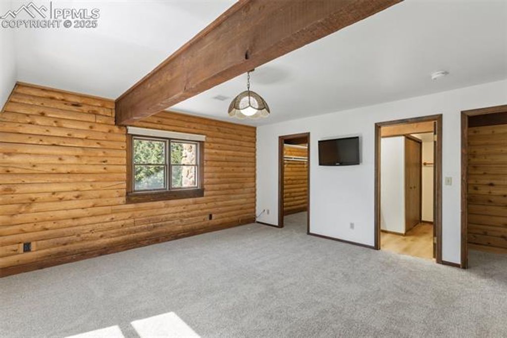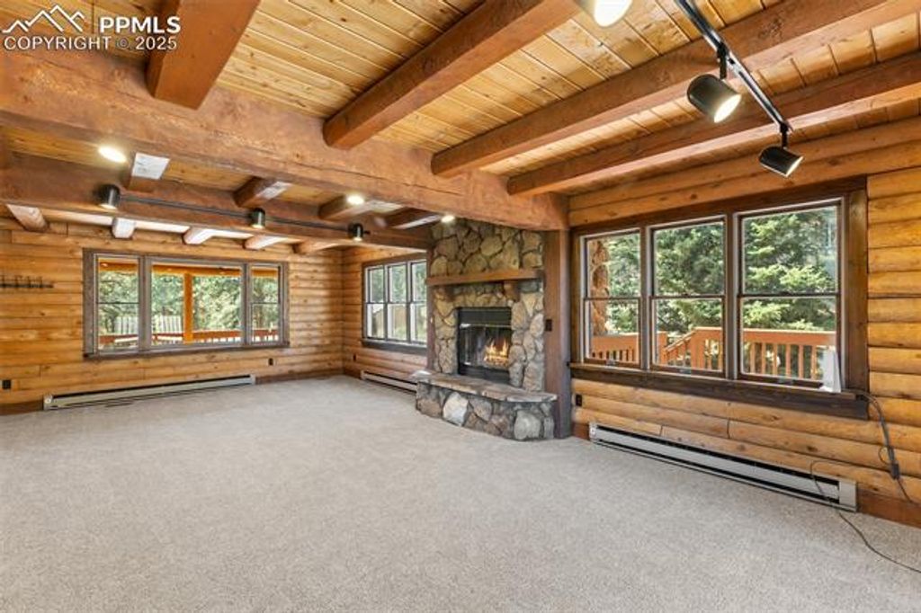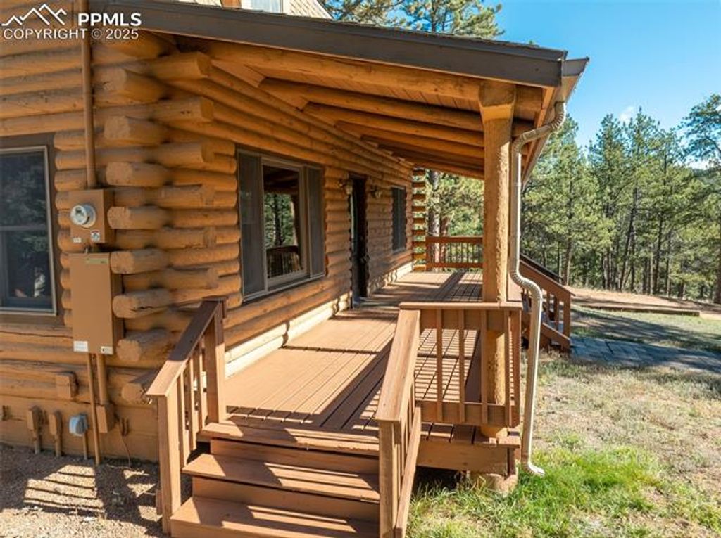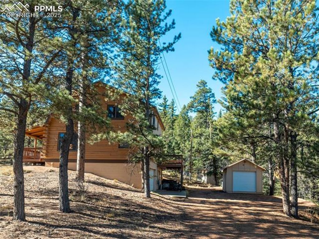 This true mountain getaway nestled in pines and aspens offers something for everyone! A welcoming covered deck and dormered windows invite you into this full log home on 3.24 acres in Druid Hills. Sparkling clean. All NEW carpet, LVT and new interior paint. New paint on exterior trim. Enter the main level into a huge living room that invites you to relax by the stone wood-burning fireplace flanked by windows. Stroll out the sliding doors to the back deck to catch a glimpse of resting deer. A rarely found large dining room, lit by a beautiful antler chandelier, easily accommodates a table for 10. The roomy kitchen will delight any cook with ample counter space, breakfast bar, new gas range, newer dishwasher, refinished oak cabinets, refrigerator, microwave & trash compactor. The entire main level features knotty pine tongue & groove ceilings with wood beam accents. Upstairs to the bedrooms you will find the 16x16 master bedroom with two walk-in closets, an attached three-quarter bath & laundry. There are two more roomy bedrooms, each with spacious closets, a full bath & linen closet. A second furnace in the attic is dedicated to the 2nd floor for better heat control. The lower level, walk-out family room with a cozy wood stove provides yet another sanctuary for whatever you can think of such as a home office, work out studio, game room, craft area, or media room. An oversized one-car garage includes workbenches, refrigerator, freezer, storage & room for toys. Outside is a 288 sq ft shed with lights, electricity, shelves and overhead door. The 30x30 dog kennel enclosed with chain link fence has insulated, heated doghouse, electricity & lighting. 17KW natural gas auto transfer WHOLE HOUSE GENERATOR was professionally installed in 2015. New roof in 2015. Septic pumped June 2025. Stove & fireplace cleaned September 2025. Starlink satellite included. 2 greenhouses with power & heat. Lots of parking. Horses are welcome! Adjoining parcels are also for sale. Virtually Staged
