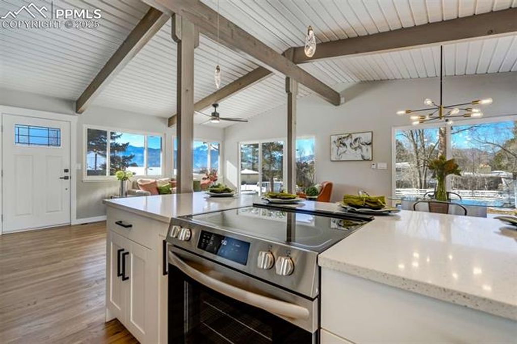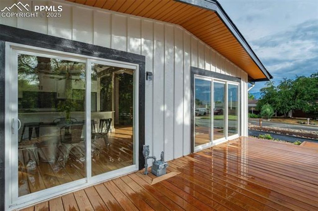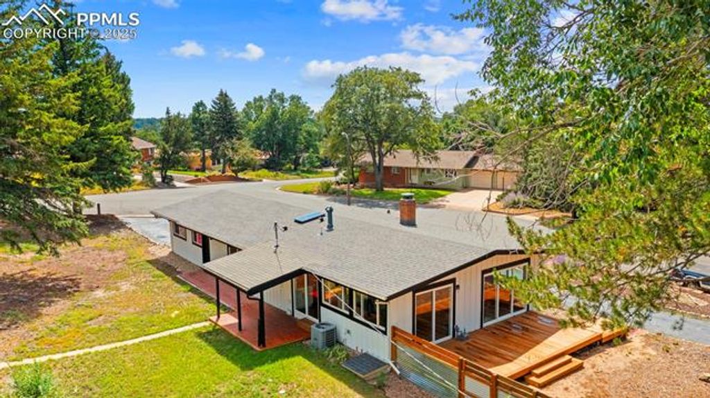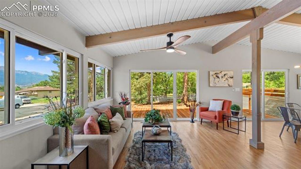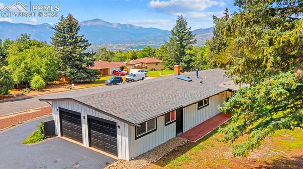 Welcome to your dream home, a stunning ranch-style oasis that embodies the essence of comfortable living and modern elegance! Nestled on a spacious lot with picturesque views of Pike's Peak, this single-story masterpiece is designed for those who appreciate main-floor living without compromising on style or functionality. Expansive windows that fill the space with natural light, while the beautiful hardwood floors that flow seamlessly throughout. A gourmet kitchen adorned with gleaming quartz countertops and a stylish tile backsplash creates an inspiring culinary space for family gatherings and entertaining friends. The walkout dining room leads you to a covered patio or the spacious deck, ideal for savoring morning coffees or hosting weekend barbecues against the backdrop of breathtaking mountain views. This outdoor sanctuary is perfect for relaxation and outdoor living, providing endless opportunities to enjoy Colorado's vibrant seasons. With an oversized garage and a convenient storage shed, this property ensures you'll have all the space you need for vehicles, tools, and seasonal items, keeping your home organized and clutter-free. Plus, the location can't be beat! Just a short walk from the University of Colorado Colorado Springs (UCCS), this home is perfect for students, faculty, or anyone who loves the vibrant energy of campus life while enjoying the tranquility of a residential neighborhood. Don't miss the opportunity to own this incredible ranch-style home, where comfort, style, and convenience come together to create the perfect living environment.