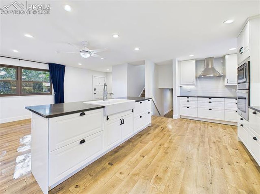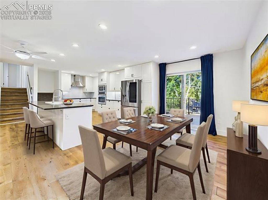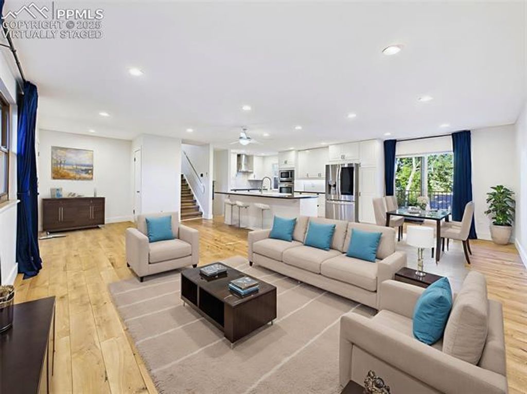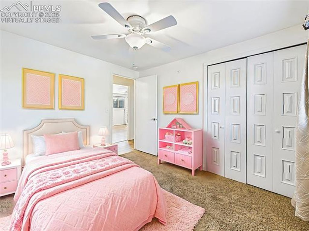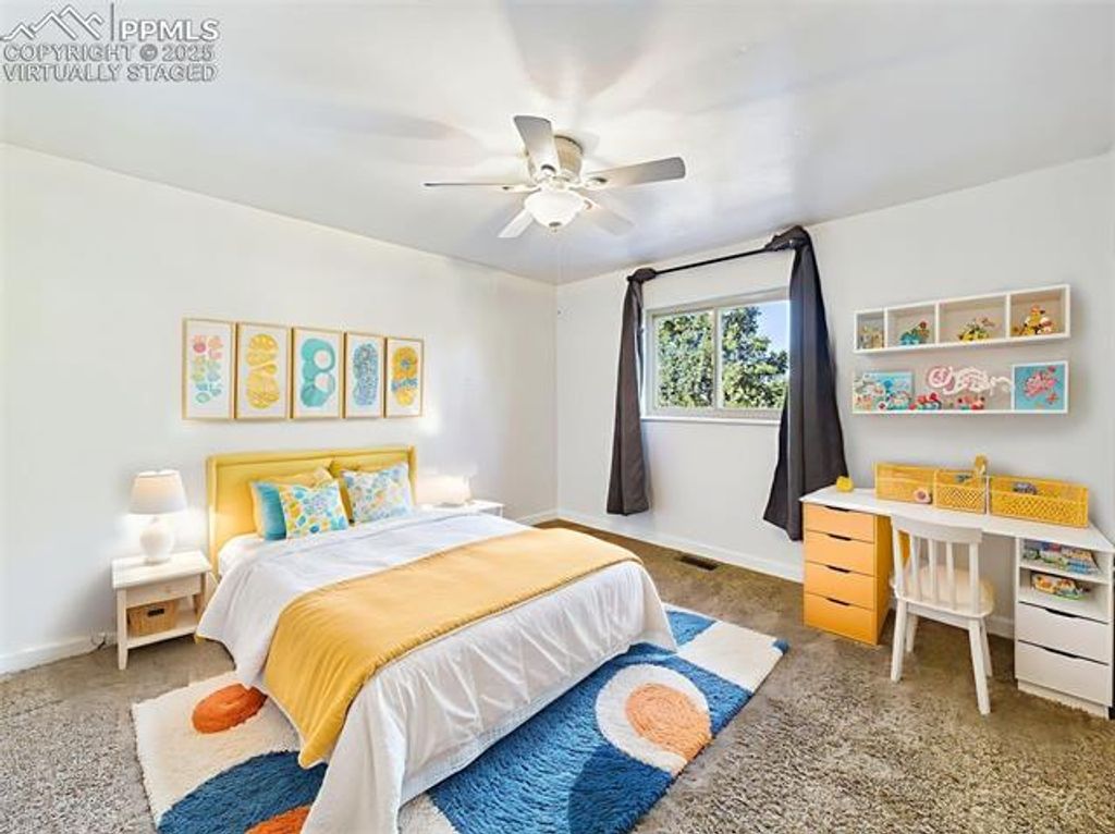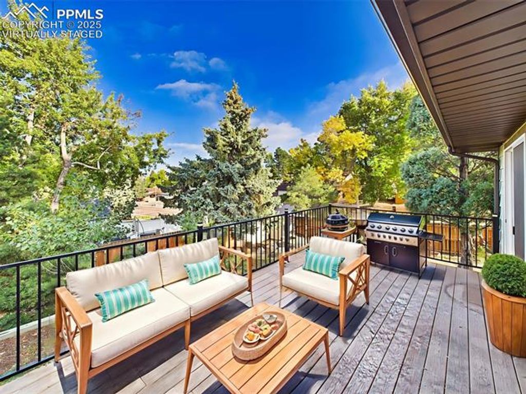 Beautifully updated and move-in ready, this spacious 4-level home offers an exceptional combination of quality, condition, and location on a private corner lot in Colorado Springs. Inside, you'll find a modern open-concept main level featuring a fully remodeled kitchen with stainless steel appliances, soft-close cabinetry, and a generous center island"”ideal for cooking and entertaining. The great room includes recessed lighting, a ceiling fan, and direct access to a composite deck through the dining area. Upstairs, bright and inviting, spacious primary suite with rustic barn-style sliding door and a private en suite bath, additional 2 bedrooms with plush carpet and updated hall bath. The lower-level family room offers a cozy fireplace framed by a brick accent wall and extended mantle, plus walk-out access to the backyard. The finished basement provides a fantastic bonus space, perfect for a home theater, game room, or entertainment lounge"”complete with LED accent lighting and ample room to spread out. Recent updates include vinyl casement windows, remodeled bathrooms, fresh paint, a newer roof 2022, central A/C, ceiling fans, and cedar-lined closet floors. Step outside to enjoy a beautifully landscaped yard with mature trees, raised garden beds, and a fully fenced backyard. Entertain on the composite deck or unwind under the stylish covered patio with privacy slats and skylights. Partial mountain views add to the charm of this outdoor retreat. Located near Villa Loma and Homestead Parks with walking trails just across the street, and close to shopping, dining, and Powers Blvd for easy commuting. This home truly has it all"”style, space, updates, and location.