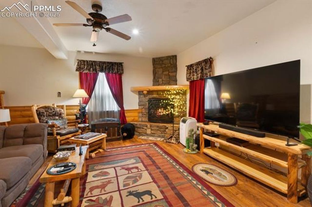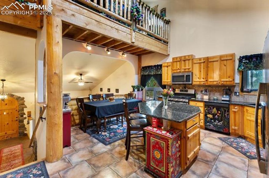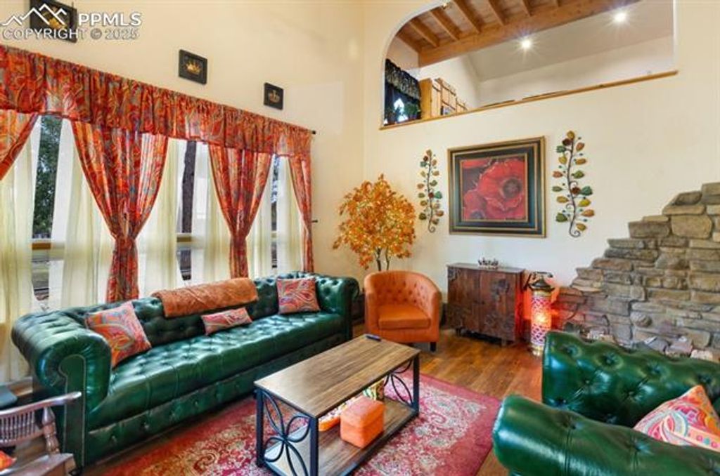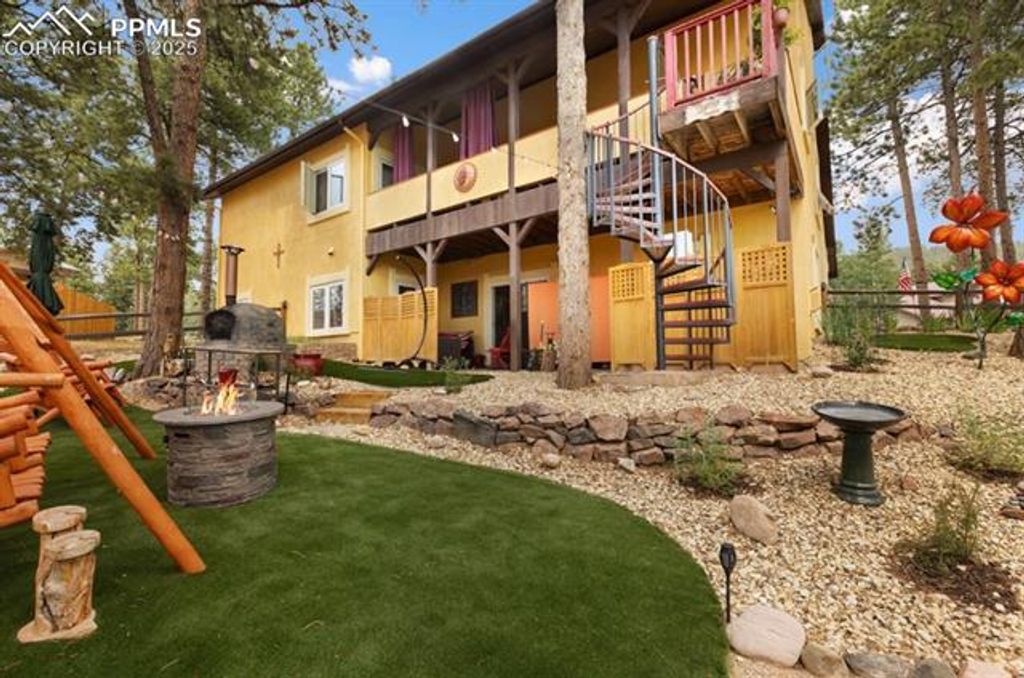 Discover this one-of-a-kind 4BD/3BA home in the heart of Woodland Park"”where small-town charm meets big mountain living. Perfectly walkable to downtown yet surrounded by the serenity of aspens and game trails, this beautiful gem combines comfort, character, and unforgettable artistry. Step inside through the custom arched wooden door to efficient, radiant in-floor heating, three cozy gas fireplaces, and a gourmet kitchen with granite countertops. Take in breathtaking views of Pikes Peak. Several outdoor spaces - two covered patios plus a fireplace and pizza oven"”offers the perfect spot to entertain under the stars. Giving you more time to enjoy and relax, the rear yard is no maintenance turf. Unwind in your choice of jetted tub, clawfoot tub, or the private 3-person hot tub. Every detail has been thoughtfully updated, from Leaf Filter gutters and roof snow melt systems to new sealed tile and more. The home itself doubles as a living art gallery, with hand-painted staircases, a custom guest bath mural, and original works celebrating Colorado's beauty. Whether you're seeking more space, a retreat in the mountains, or a lifestyle rooted in warmth and inspiration, this home delivers. Come see why it's truly one of a kind"”your Colorado dream begins here!