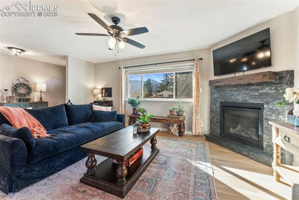 Welcome to this beautifully remodeled rancher in the highly sought-after Pleasant Valley neighborhood"”Close to Garden of the Gods, hiking trails, and endless outdoor adventure. This four-bedroom, two-bath home blends wide-open living with a warm, cozy feel the moment you walk in. The inviting main level greets you with a charming fireplace and a bright living room that flows seamlessly into the updated dining area and kitchen. Hardwood floors extend throughout the main level, adding timeless style and comfort. The kitchen has been thoughtfully refreshed with newer finishes, while both bathrooms have been tastefully updated. Three generous sized bedrooms on the main level offer ample space and natural light. Downstairs, the refinished basement provides exceptional flexibility with a large family room, an additional bedroom or office, and a conveniently located bath"”perfect for guests, work, or relaxation. The home features fresh interior and exterior paint, new siding, and a newer deck ideal for outdoor entertaining. Enjoy peaceful mornings and stunning Colorado scenery from the private lot, with views of Pikes Peak right out your front window. A park at the end of the street enhances the neighborhood's charm and walkability. The oversized two-car garage offers abundant storage for gear, tools, and hobbies. Pleasant Valley is known for its established character, mature landscaping, and unbeatable proximity to trails, shopping, and some of Colorado Springs' most iconic destinations.