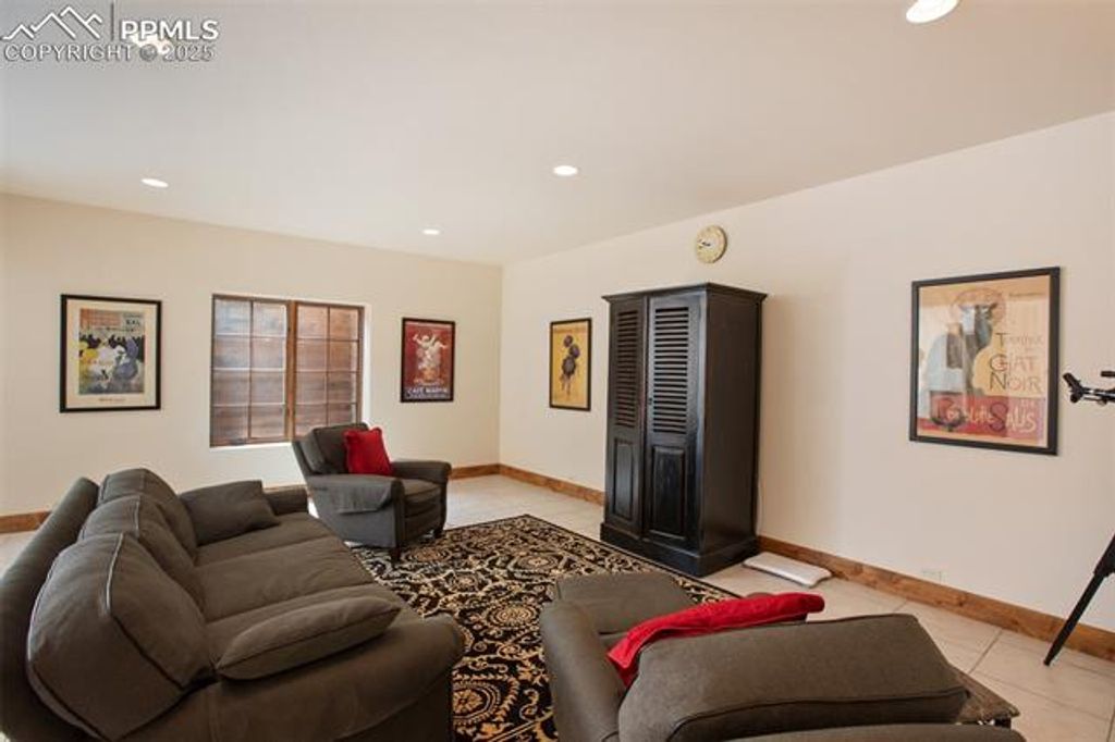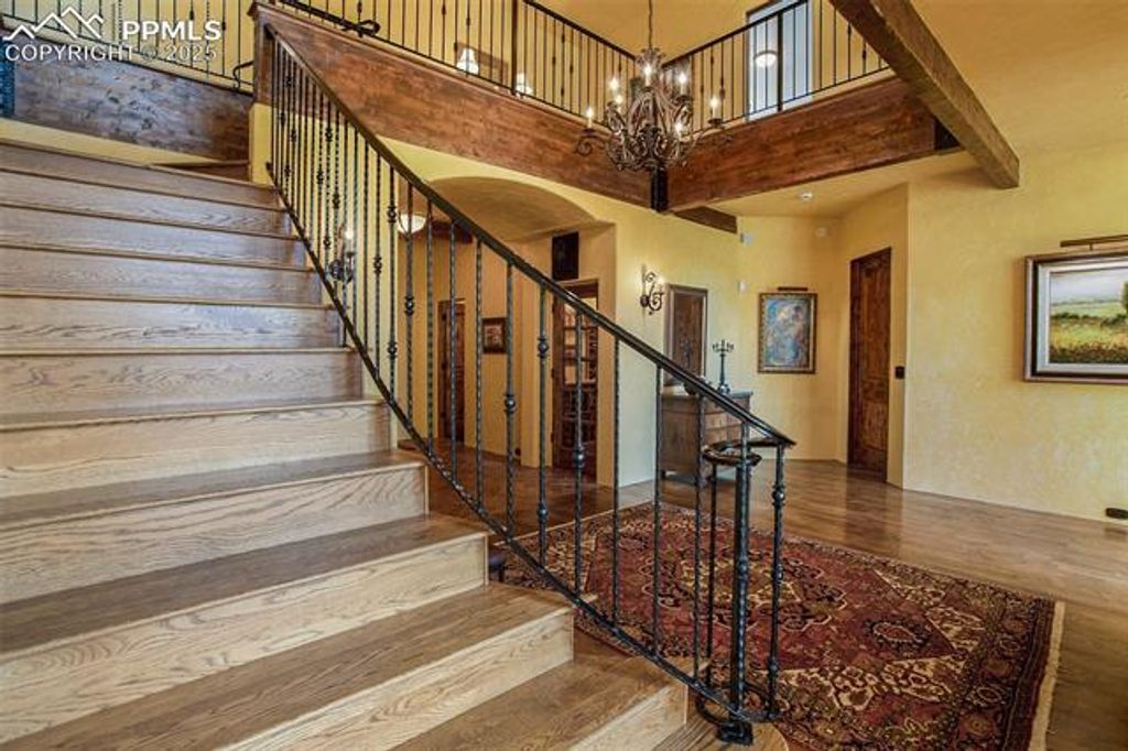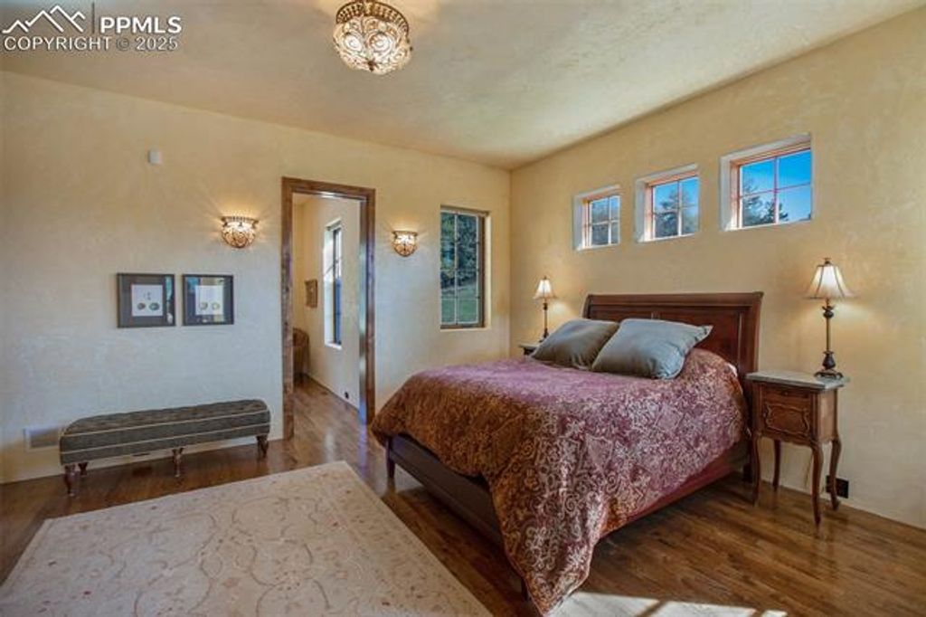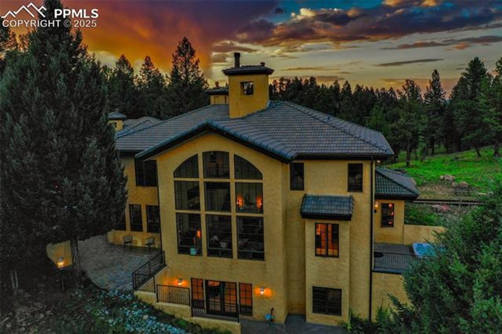 This meticulously designed luxury estate sits on 40 acres of wooded land zoned A-1 (agricultural), bordered by National Forest on 2 sides and BLM land on the third, and only 10 minutes from Woodland Park, offering a unique blend of elegance and tranquility. This custom home was constructed in 2004 and has been used as a second home by the original owners. A heated 3-car garage, new cobblestone driveway, flagstone entry, and exterior copper gutters add a touch of grandeur to your arrival. The gourmet kitchen is equipped with top-of-the-line appliances, including two Bosch dishwashers, a Subzero refrigerator, and a Wolf gas range with double ovens. The decorative features such as hand-painted Italian backsplash tile and hand-trowled stucco walls are set against custom alder cabinets and oak flooring. The spacious living areas provide stunning views of Pike's Peak. Cozy up by one of the two fireplaces indoors or enjoy the outdoor stone fireplace in the patio kitchen, perfect for alfresco dining. Immerse yourself in the natural beauty surrounding the property. Engage in outdoor activities like horseshoes, unwind in the serenity of your private hot tub, or take a short 10-minute drive to play golf. This home is perfect for a couple's solitude or hosting friends and family (easily providing lodging for 16-20). A few of this home's unique features include a wine cellar, limestone columns/fireplace mantle, a "bunkhouse" (or exercise room, quilting room, or whatever you desire), 2 laundry facilities, and a mudroom/butler's pantry/bar with lighted mullion cabinet doors. Structural integrity and insulation are ensured with exterior walls that are 18 inches thick, providing durability and peace of mind. New alarm system installed in 2024. This Tuscan-inspired masterpiece offers a sanctuary where luxury, comfort, and natural beauty converge seamlessly. Escape to this idyllic retreat where convenience meets seclusion in the heart of Colorado's beautiful landscape!