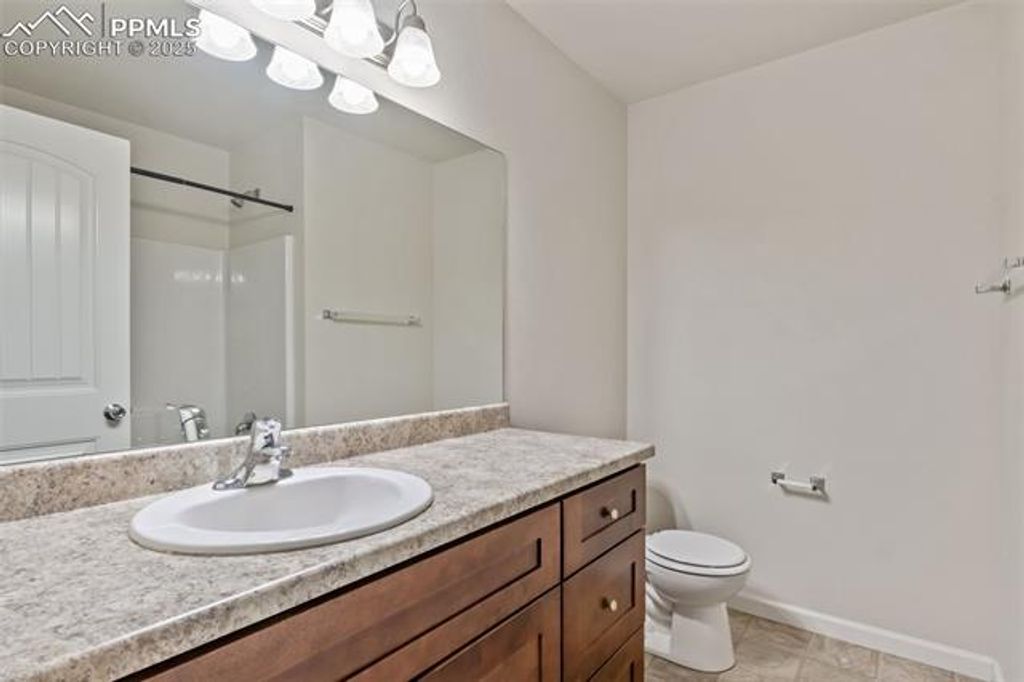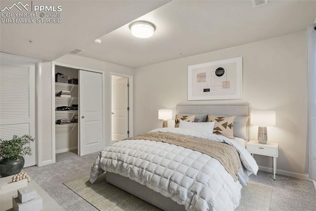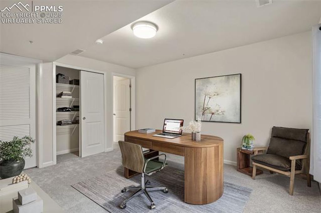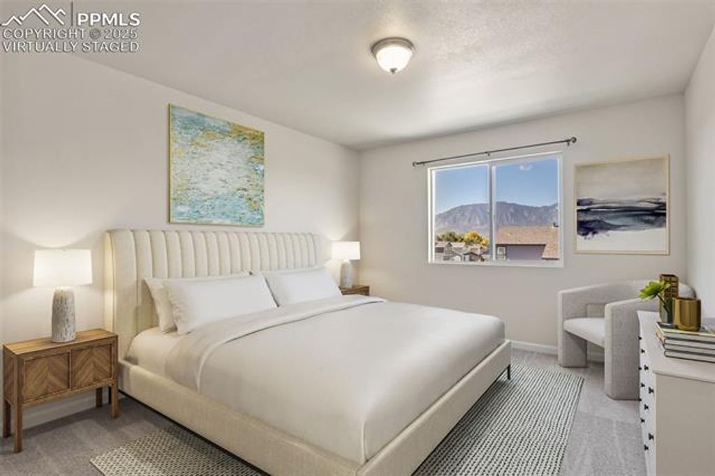 Welcome home! Located just minutes from Fort Carson, Peterson SFB, shopping, quick hop onto i25 and dining, this beautifully maintained home offers convenience and comfort in one perfect package. Step inside to find a bright, open layout with plenty of natural light and modern finishes throughout. Upstairs, the primary suite features stunning Front Range views, creating the perfect spot to unwind after a long day. The finished basement flex room offers endless possibilities, use it as a 4th bedroom, home office, guest suite, or workout space, complete with its own attached bathroom and laundry area on the same level for added convenience. Enjoy Colorado living at its best with easy access to bases, trails, and local amenities, all while coming home to low maintenance living in a peaceful community setting. Whether you're looking for space, views, or location, this one checks all the boxes!