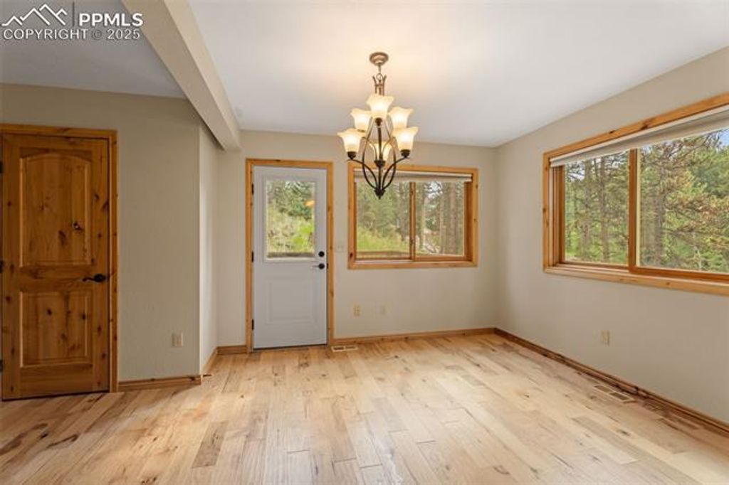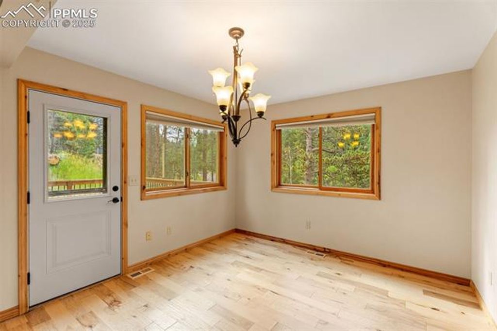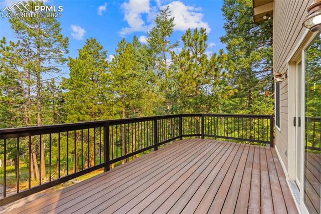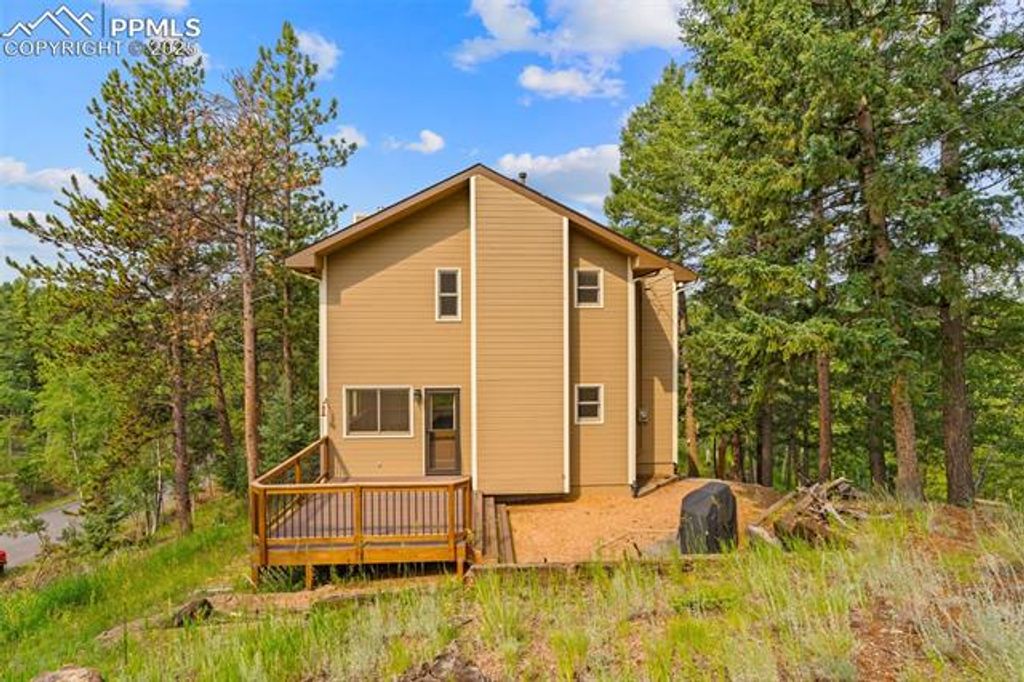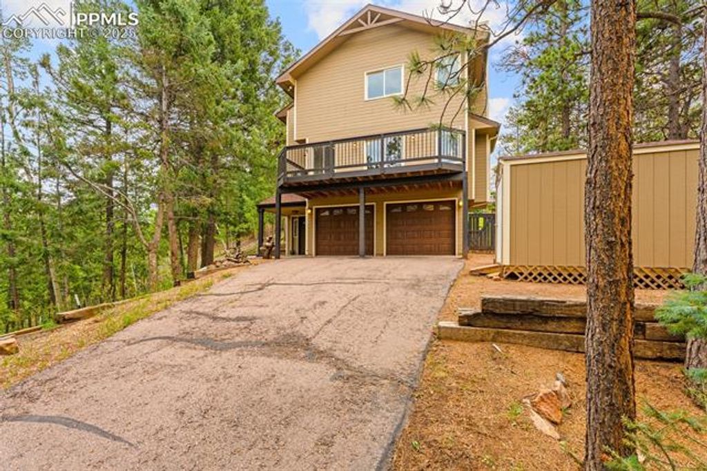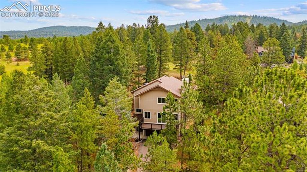 Nestled atop a beautifully treed 1-acre lot, this mountain home offers privacy, natural beauty, and stunning views. The open main floor plan welcomes you with a bright and inviting living room featuring multiple windows that fill the space with natural light, free standing cozy gas-log stove, and walkout access to a spacious deck"”perfect for enjoying the mountain air. The kitchen is well-appointed with a breakfast bar and a sunny nook, ideal for casual meals, while the formal dining room offers a more intimate setting and opens to its own private deck. Upstairs, you'll find two expansive en suite bedrooms, including a spacious primary suite with a large walk-in closet. The laundry area is conveniently located near the upper-level bedrooms. The home features beautiful knotty alder solid wood doors and trim throughout, adding warmth and rustic charm. The lower level includes a third bedroom with an attached full bath, offering privacy for guests or multigenerational living. An attached 2-car garage provides convenient parking and storage. Located just minutes from all the amenities of Woodland Park"”including the hospital, schools, shopping, and dining"”this home also offers easy access to outdoor recreation, with Pike National Forest, Rampart Reservoir, and miles of hiking and biking trails nearby. This is Colorado mountain living at its finest.