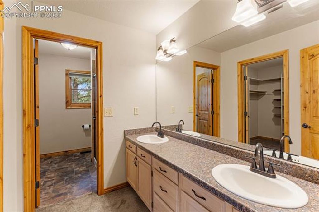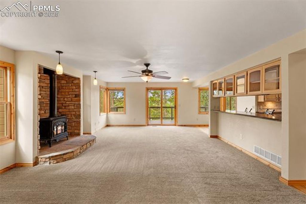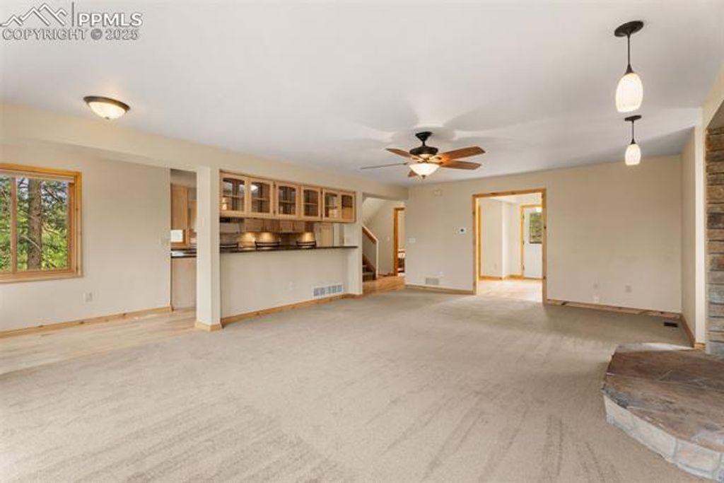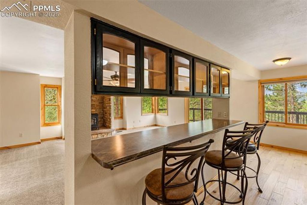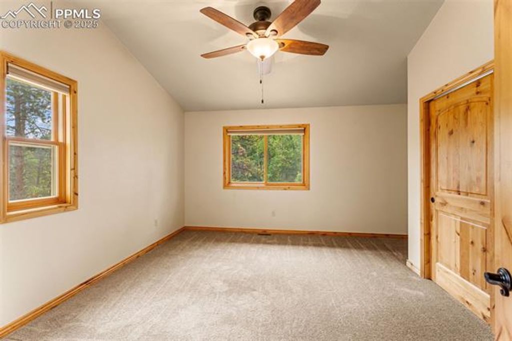 Nestled atop a beautifully treed 1-acre lot, this mountain home offers privacy, natural beauty, and stunning views. The open main floor plan welcomes you with a bright and inviting living room featuring multiple windows that fill the space with natural light, free standing cozy gas-log stove, and walkout access to a spacious deck"”perfect for enjoying the mountain air. The kitchen is well-appointed with a breakfast bar and a sunny nook, ideal for casual meals, while the formal dining room offers a more intimate setting and opens to its own private deck. Upstairs, you'll find two expansive en suite bedrooms, including a spacious primary suite with a large walk-in closet. The laundry area is conveniently located near the upper-level bedrooms. The home features beautiful knotty alder solid wood doors and trim throughout, adding warmth and rustic charm. The lower level includes a third bedroom with an attached full bath, offering privacy for guests or multigenerational living. An attached 2-car garage provides convenient parking and storage. Located just minutes from all the amenities of Woodland Park"”including the hospital, schools, shopping, and dining"”this home also offers easy access to outdoor recreation, with Pike National Forest, Rampart Reservoir, and miles of hiking and biking trails nearby. This is Colorado mountain living at its finest.