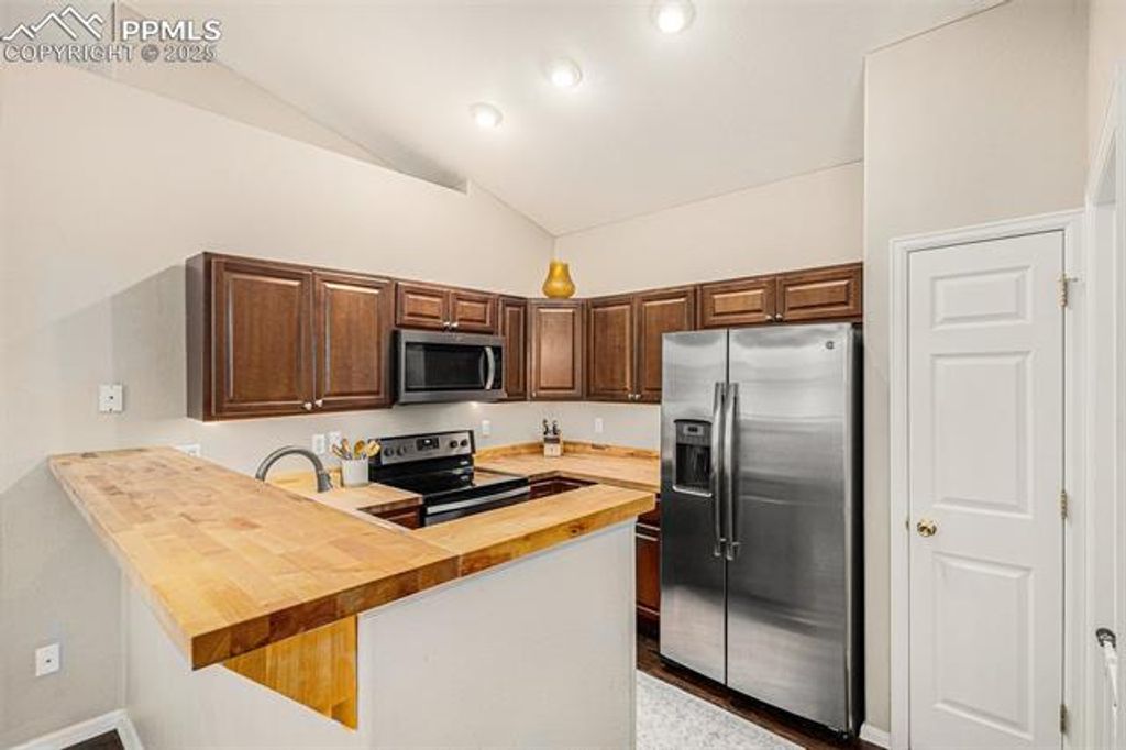 *Effortless one-level living *Beautifully maintained *Located in a sought-after gated community near the Country Club of Colorado *Easy access to Ft. Carson, I25 and Hwy 115. This 3-bedroom, 2-bathroom home offers the perfect blend of comfort, style, and convenience. Step inside to soaring vaulted ceilings, laminate wood flooring and an open layout that feels bright and spacious. The kitchen features stunning butcher block countertops, stainless steel appliances, and a pantry. The separate laundry room, conveniently connected to the attached garage, adds everyday ease. The primary suite includes a private attached bathroom with double sinks and a walk-in closet. The 2 additional bedrooms could also be used for office or exercise space. Enjoy your own low-maintenance, private backyard patio - ideal for relaxing or entertaining. Don't miss out on this charming home!