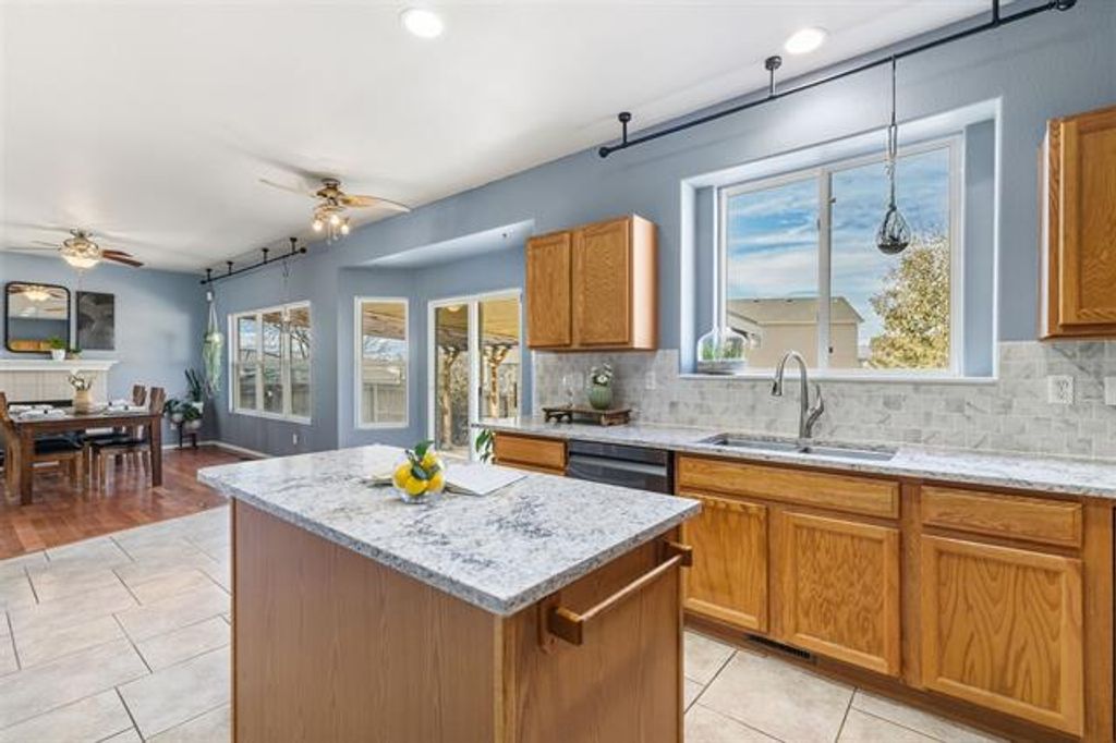 Spacious 5-Bedroom Home with Vaulted Ceilings, Modern Upgrades & Prime Location in Claremont Ranch! From the moment you walk in, this 5-bedroom, 4-bathroom home feels warm and inviting. The entryway opens to living room with impressive vaulted ceilings that fill the space with natural light. A second living area"”currently used as a formal dining room"”features a beautiful gas fireplace and large windows, creating a bright and comfortable atmosphere. The adjoining kitchen has been tastefully updated with quartz countertops with stylish backsplash and an island, perfect for cooking and entertaining. Step outside to a fenced backyard with a covered patio"”ideal for outdoor dining, summer BBQs, or simply relaxing in our fresh Colorado air! Upstairs, you'll find four of the five bedrooms, including a spacious primary suite with a updated ensuite bathroom and a walk-in closet. The finished basement offers a great recreation area, additional bedroom, full bathroom and plenty of storage. This home provides ample space for comfort and convenience with a two-car garage and an extended driveway for extra parking. The newer furnace features an infrared system for cleaner air and easy maintenance. Conveniently located near Fort Carson, Peterson AFB, and Schriever AFB with easy access to shopping & entertainment! This home combines modern updates, space, and location"”making it the perfect place to call home!