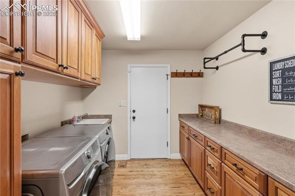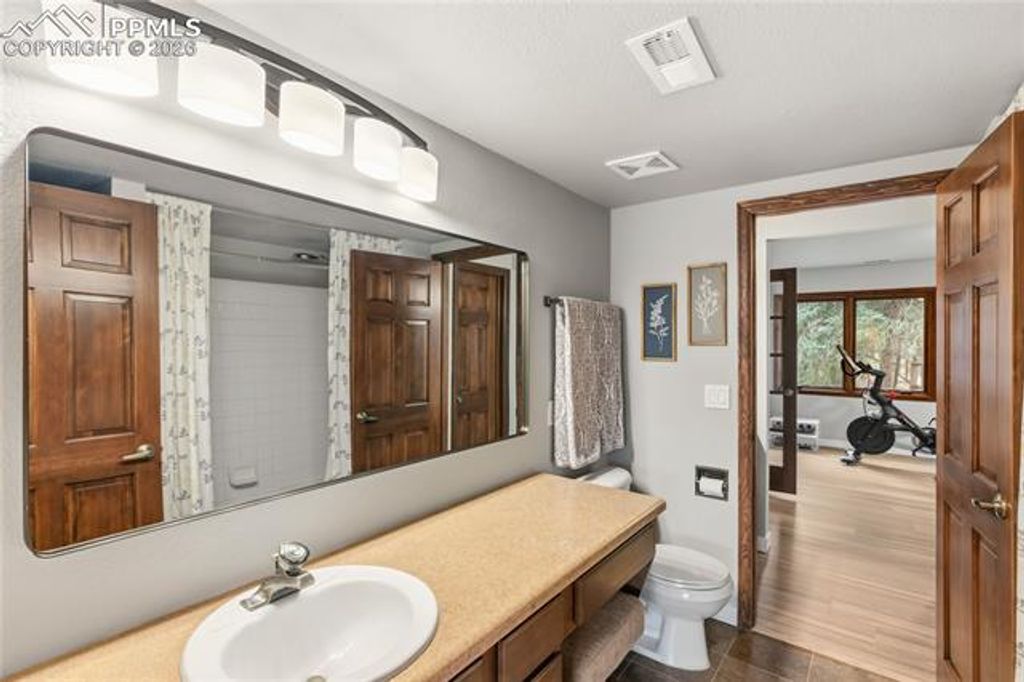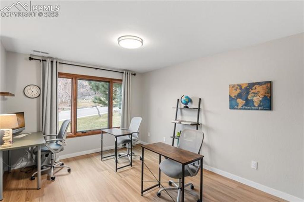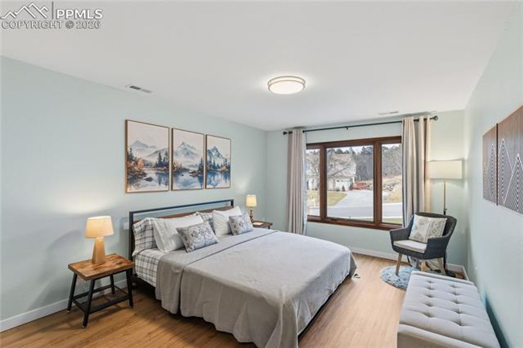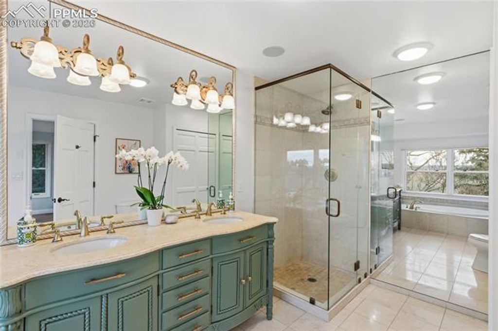 Nestled in the sun-washed foothills of the Front Range within the coveted Broadmoor Hills Park neighborhood, this six-bedroom, five-bath residence unfolds like a private mountain retreat with the manners of a five-star resort. The home welcomes you with hardwood floors across the main level, leading to granite counters, a commanding Thermador refrigerator, and custom cabinets with clever pull-outs that keep every tool at your fingertips. Three bedrooms feature walk-in closets, while thoughtfully designed storage spaces appear throughout, proving that beauty and organization can share the same address. A large composite deck frames astonishing views, complete with a built-in gas grill for evenings when the sky turns the color of crushed plums. The tile roof and three-car attached garage provide stalwart guardianship, and a newly remodeled bathroom adds a sparkle of modern comfort. Drip lines nourish all planters and pots, with irrigation already in place to every terrace and courtyard, making the outdoor rooms as effortless as they are picturesque. Located moments from local amenities, hiking trails, and year-round adventures, this luxury property offers a rare vantage where city conveniences mingle with the call of open spaces.