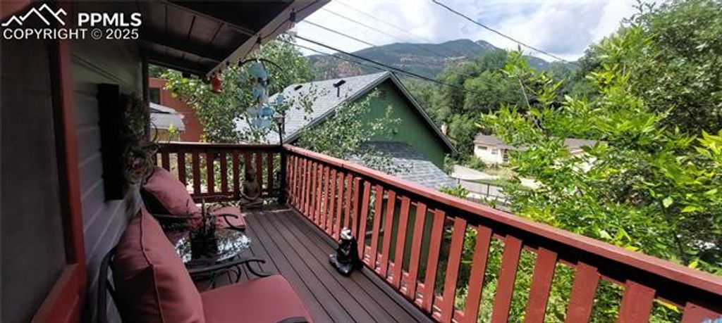 Your search is over! VACATION RETREAT, INVESTMENT OPPORTUNITY, OR HOME SWEET HOME! This 2-bedroom, 2 bathroom is a cozy, serene escape with convenience and historical charm in the heart of Manitou Springs. Just a short walk to numerous, quaint shops, unique cafes, a famous historic luxury hotel/restaurant, a hiker's dream of an abundance of hiking trails to include the Manitou Incline, Williams Canyon, and many more! This home features a private deck for the tranquil enjoyment of the mountains that surround the town, wildlife, and fresh air. This home has new paint, new tile, and many updates in the main level bathroom, new quartz countertop in the kitchen, luxury vinyl plank flooring, newer carpet, composite decking, a rare off-street parking space, and a private rear access that could be great for a roommate or teenager. This property was used as a vacation rental and comes with all the furniture, linens, decor, dishes, and cookware with the right offer. Extra storage available from the rear of the home.