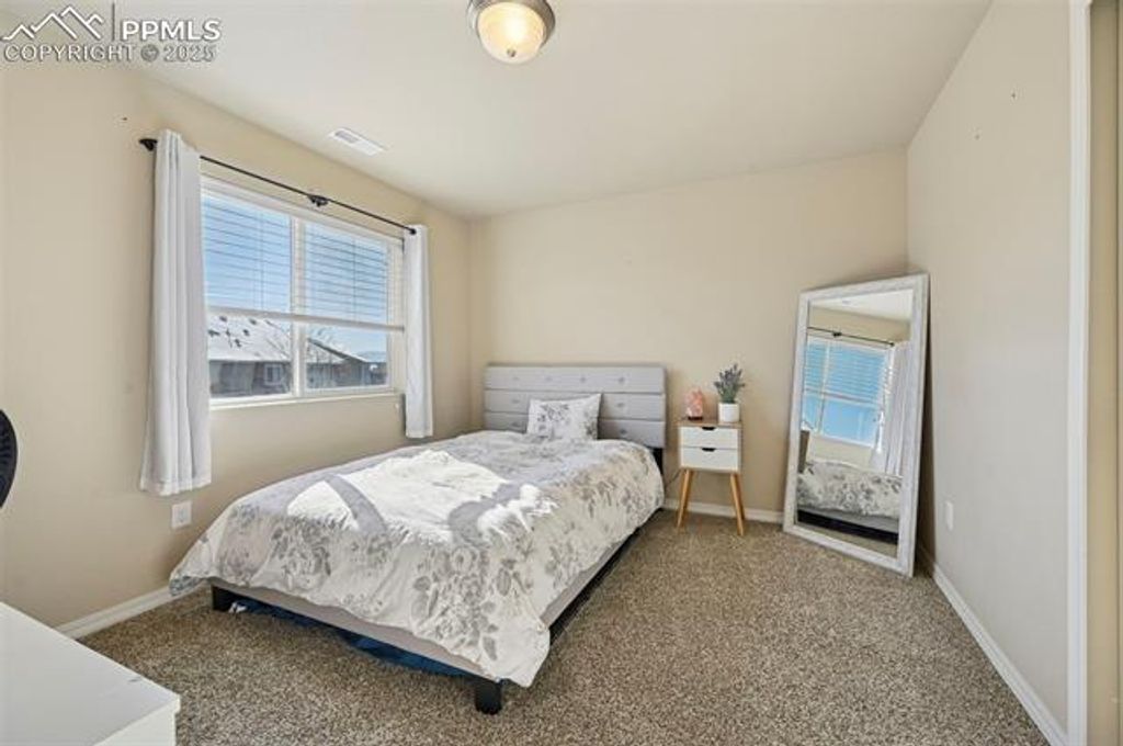 Great 2 story in Trails at Forest Meadows. Beautiful views of Pikes Peak and the Front Range. This lovely home features 3 beds, 2.5 baths, living room, kitchen, upper laundry and 2 car attached garage. Full landscaping, vinyl fencing, concrete patio & sidewalk. Pride of ownership shines throughout. Neutral tones and the many windows allow the natural sunlight to cascade in keeping this home bright and cheerful. Short distance to the park, walking trails with community parks and Grand Peak Elementary school. Minutes to military bases, Woodman Road and Powers Corridor. Close to dining, shopping, entertainment and other amenities. This home is move in ready. Don't miss your opportunity. Welcome Home!