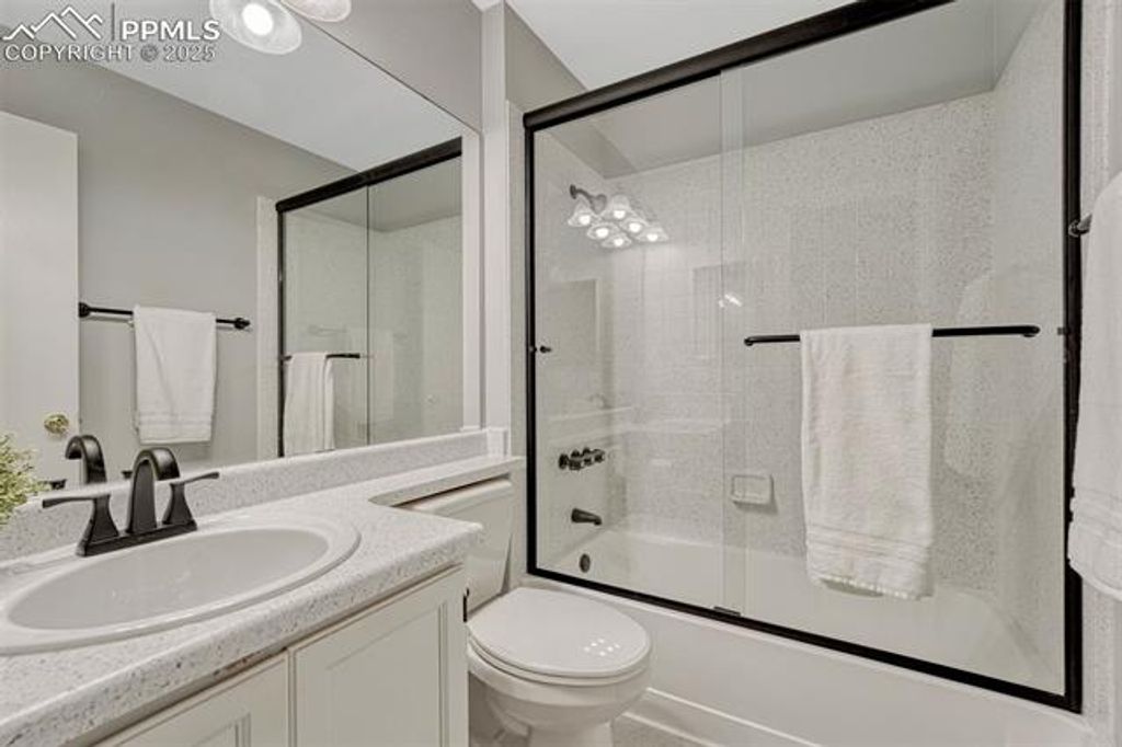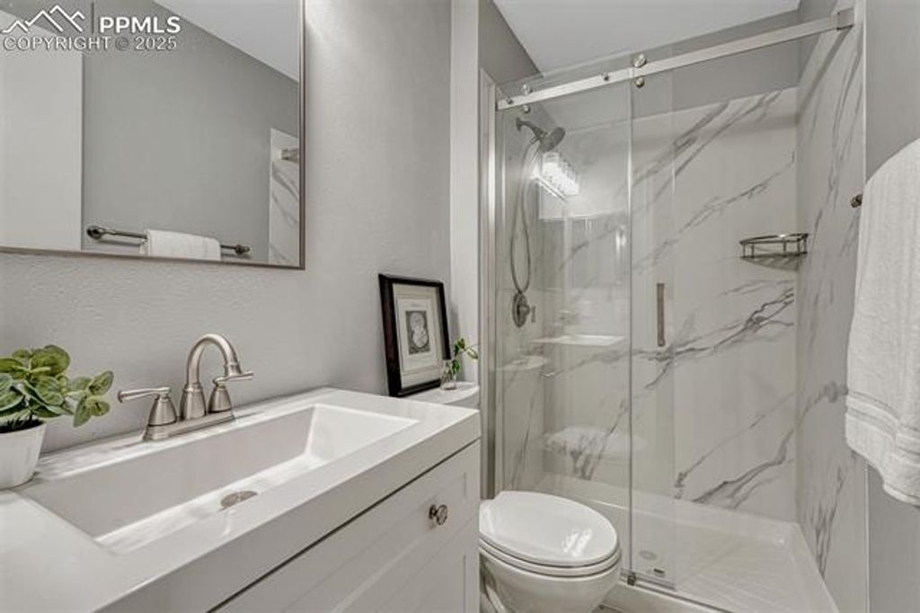 Welcome to this beautifully maintained and thoughtfully updated home, offering comfort, style, and functionality in one perfect package. Freshly painted inside and featuring updated bathrooms, this residence boasts a bright, open floor plan designed for modern living. The spacious living area centers around a gas fireplace with a custom surround, creating a warm and inviting atmosphere. Step outside to your private backyard retreat"”complete with a covered patio that extends your living space and provides the perfect setting for outdoor entertaining or quiet relaxation. The primary suite offers a peaceful escape, featuring its own newly updated bath. Two additional bedrooms share a beautifully remodeled full bath, providing plenty of room for family, guests or home office. The finished basement adds even more flexibility, easily functioning as a fourth bedroom, home office, or additional family room"”with its own bathroom for added convenience. Additional highlights include durable LVP flooring, central air conditioning, abundant storage, a plumbed-in sprinkler system, built-in garage shelving, and all appliances and window coverings included. Situated in a highly desirable neighborhood near the Powers Corridor, this home offers quick access to shopping, dining, and major military installations including Peterson, Schriever, and the Air Force Academy. Don't miss your chance to own this exceptional home"”schedule your private showing today!