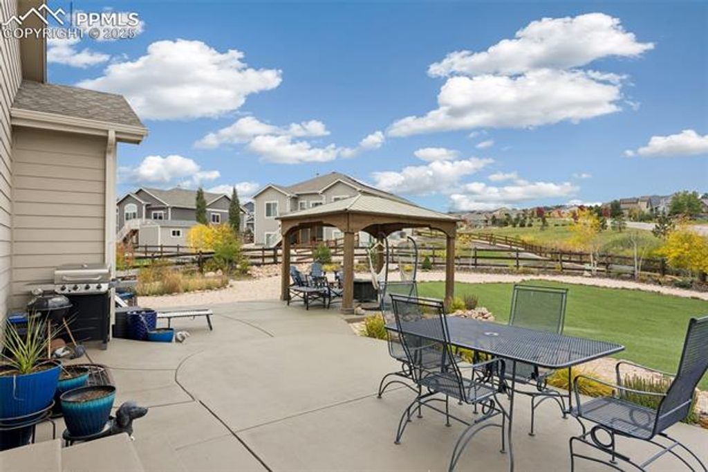 Welcome to this stunning ranch-style home in the heart of Monument that perfectly blends comfort, design, and Colorado living. Enjoy true main-level living with the primary suite and laundry conveniently located on the main floor. Soaring vaulted ceilings fill the home with natural light, while the gourmet kitchen impresses with elegant finishes, a large island, and quality appliances. The beautifully finished basement offers additional living and entertaining space, ideal for family nights or guests. Outside, you'll love the zero-scaped front yard for easy maintenance and the huge, stunning backyard featuring a concrete patio, fire pit, and charming gazebo"”perfect for a family who loves to relax and entertain under the Colorado sky.