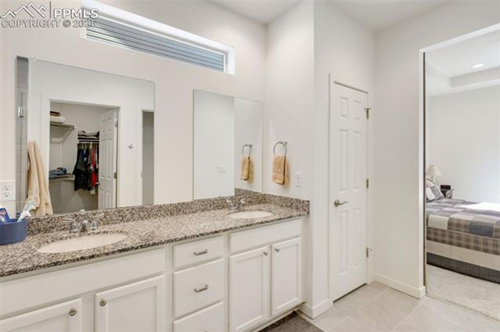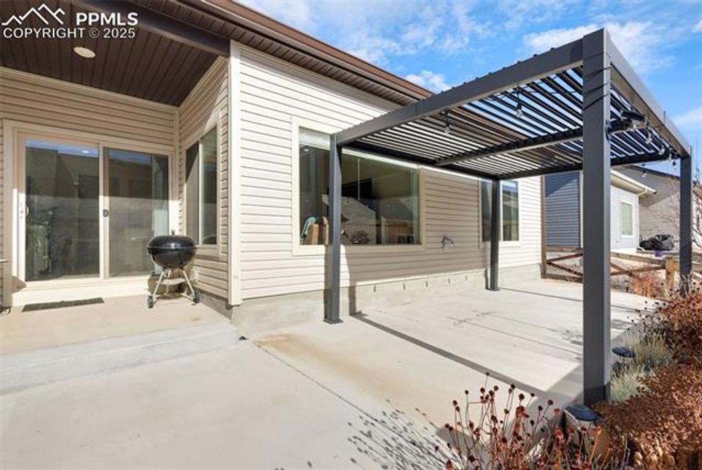 Beautiful property in Banning Lewis Ranch! This property is in the 55+ community area of Banning Lewis Ranch, with the community Tennis Court just across the street from this cul-de-sac. Upon entering the property you will be greeted with a light and bright entry, the secondary bedroom is just off of the entryway with the guest bath. Patio 9 x 25 The main living area of the home is a great room, with the living room dining area and kitchen working together to create a space with tons of natural light. The kitchen has a large kitchen island and a lot of storage space. From the kitchen you can walk out onto the expansive back patio which is great for entertaining. Off of the great room area is The primary bedroom with a lovely primary bath attached and a big walk-in closet. There is also a bonus room off of the great room as well. This space could make for a great home office, or home gym, as well as a guest area when you have visitors.
