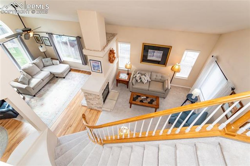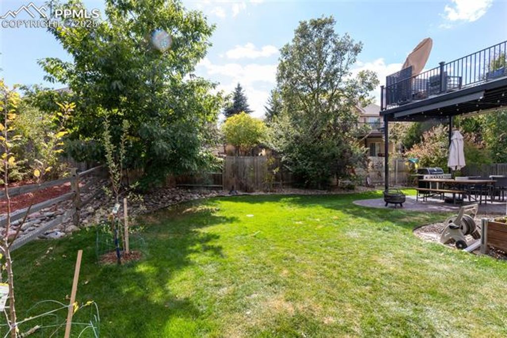This stunning 5-bedroom, 4-bathroom home in The Summit at Vista Mesa is move-in ready and filled with thoughtful updates. From the moment you enter, you'll be welcomed by newer beautiful hardwood floors, vaulted ceilings, and a cozy see-through fireplace that connects the living spaces. The kitchen has been tastefully updated with newer cabinets and countertops, and opens directly to the deck which is 14x14 ,ideal for entertaining or quiet evenings outdoors, with views of Pikes Peak! The pergola features removable steel panels so one can enjoy shade or sunshine at their choice. The backyard is enhanced with newly planted apple and aspen trees for extra privacy. The primary suite offers its own deck which is 14x14, recently expanded for even more space to relax and enjoy the outdoors, with the stunning views the mountains.The two bedrooms upstairs share a Jack and Jill bathroom. Downstairs, the finished basement includes a soundproof room perfect for a musician, home office, playroom, or private retreat. Highlights are:Brand-new windows and sliding door on the back of the home (2025),Oversized 3-car garage with extra storage space.There is a 10x12 Greenhouse attached to the house in the backyard, outside the main level bedroom. A bonus to the property, there is a built-in safe in the livingroom closet! Easy access to neighborhood trailheads that connect to Sunset Mesa Open Space, offering some of the best panoramic views in Colorado Springs, including fireworks on the 4th of July! Close proximity to schools, Cottonwood Creek Park, and shopping. With its blend of updates, space, and unbeatable location, this home is ready for its next family to begin making memories.