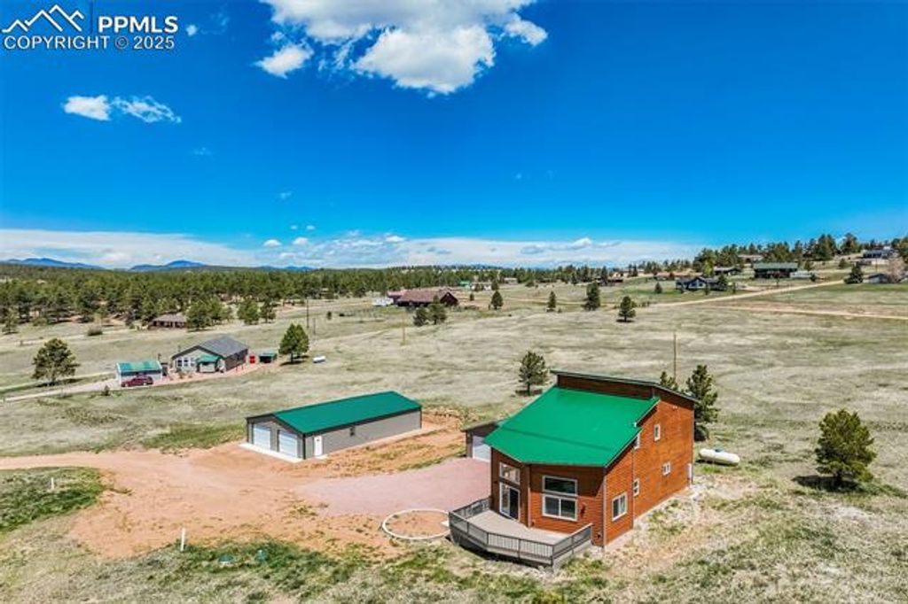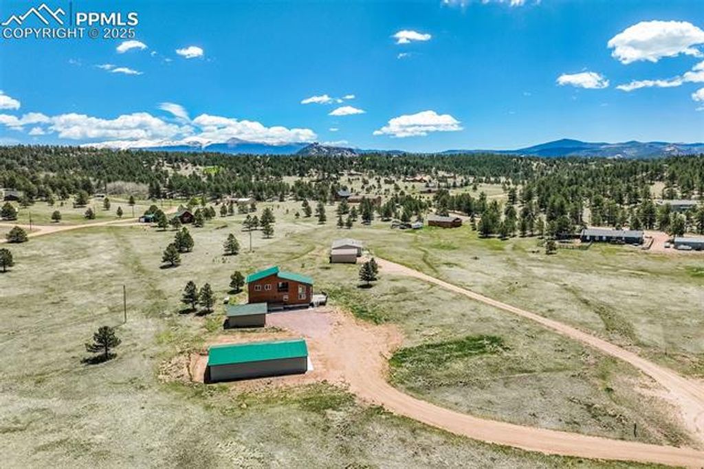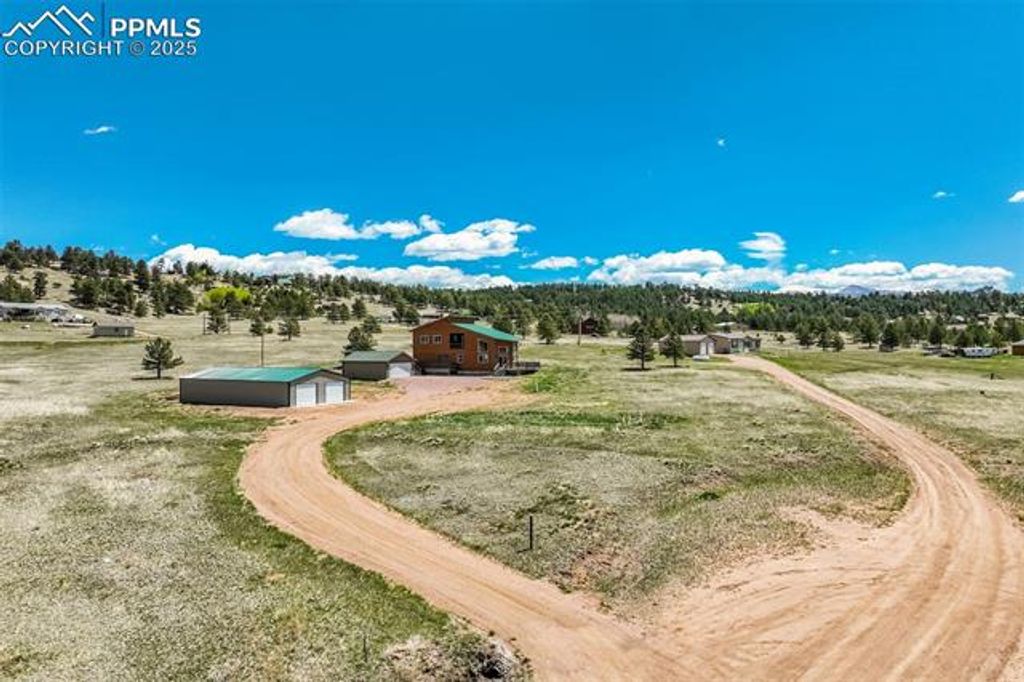 Welcome to your peaceful mountain escape in beautiful Florissant, Colorado! This immaculately maintained 3-bedroom, 2-bathroom home offers just over 1,600 sq ft of inviting living space, where rustic charm meets modern comfort. Nestled on a private 2-acre lot, this home delivers the perfect blend of seclusion and convenience. Step inside to find a warm, light-filled interior with thoughtful updates throughout. The upper-level primary suite is a true retreat, featuring a sitting area overlooking the main level and a private balcony"”perfect for enjoying your morning coffee or stargazing under the Colorado sky. Outside, a freshly stained deck extends your living space and invites you to relax or entertain. Car enthusiasts and hobbyists will love the two detached garages with electricity, offering six total parking spaces"”plenty of room for vehicles, toys, and tools. This home is set back from major roadways but still offers easy access via well-maintained county roads like CR-1 and County Rd 42, providing peaceful privacy without sacrificing year-round access or commute convenience. Additional highlights include a radon mitigation system, professionally cleaned interior, and recent septic service"”making this home completely move-in ready. Whether you're looking for a full-time residence, a weekend getaway, or a smart investment, this mountain gem is a rare find. Don't miss your chance to own a slice of Colorado mountain life"”schedule your showing today!