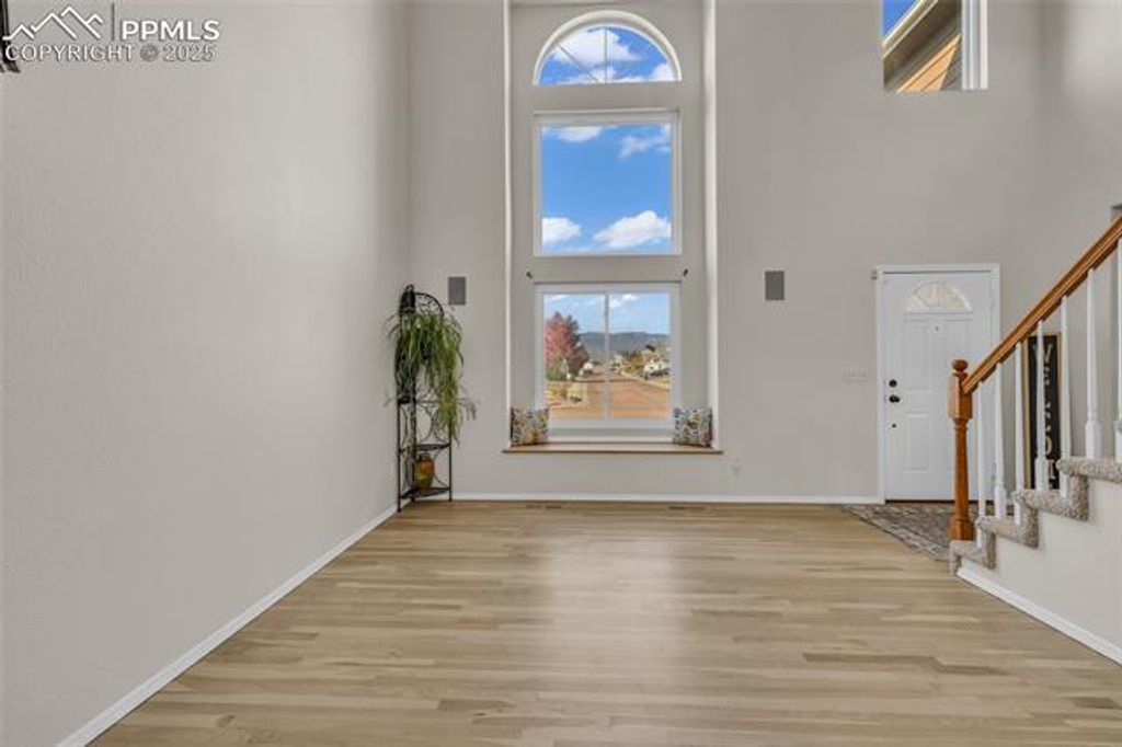 "Some homes don't just shelter you...they inspire you." From the moment you arrive at 4519 Fencer Rd, you can feel it; this is a home that's been loved, refined, and cared for with intention. The freshly painted exterior gleams beneath the Colorado sunshine, perfectly complemented by upgraded landscaping that adds color, texture, and curb appeal. Every plant, stone, and pathway feels thoughtfully placed, welcoming you into a space that radiates pride of ownership. Step inside, and the attention to detail continues. The brightened floors reflect natural light from every angle, creating a warm, uplifting atmosphere that feels both open and inviting. Upgraded lighting fixtures add a subtle touch of sophistication, casting a soft glow that highlights the clean lines and craftsmanship throughout. The freshly painted interior walls, finished in modern yet timeless tones, provide a beautiful backdrop that allows your furniture and décor to shine. Not to mention exaggerated ceilings providing natural light and a canvas for the largest of decoration. Each room flows effortlessly into the next, designed for comfort and connection. Whether you're hosting friends, sharing dinner with family, or enjoying a quiet night in. Large windows frame the outdoors, where breathtaking mountain views remind you daily that you're living somewhere truly special. Step outside to your private backyard retreat, where the landscaping feels like an extension of the home itself. Stamped concrete and paved stones guide you to a designed space to entertain, relax, or enjoy the perfect views of Colorado's painted skies. Tastefully upgraded, 4519 Fencer Rd offers a rare blend of comfort, craftsmanship, and quiet luxury. This home is not just move in ready. It's the kind of home that makes you proud every time you pull into the driveway.