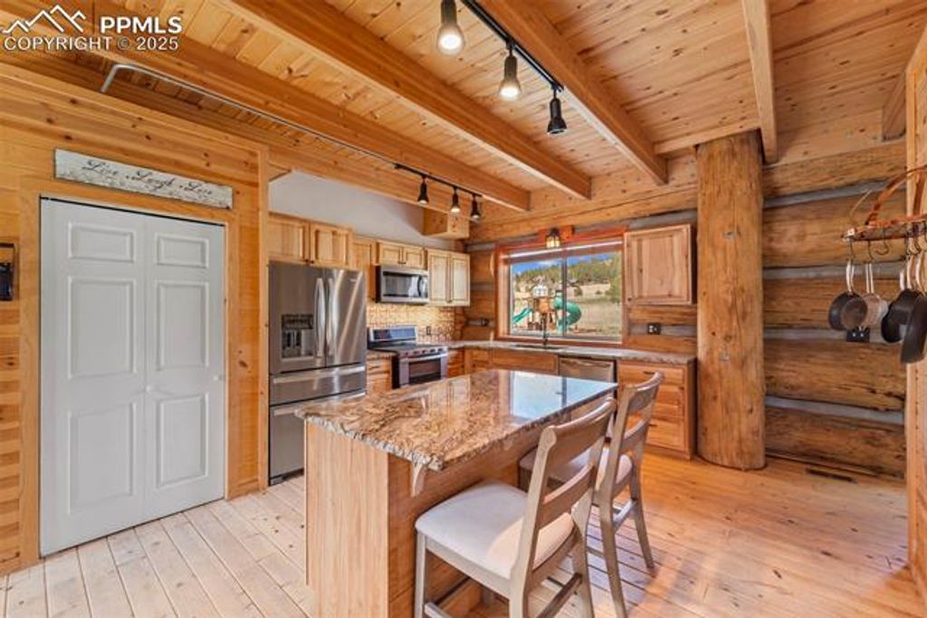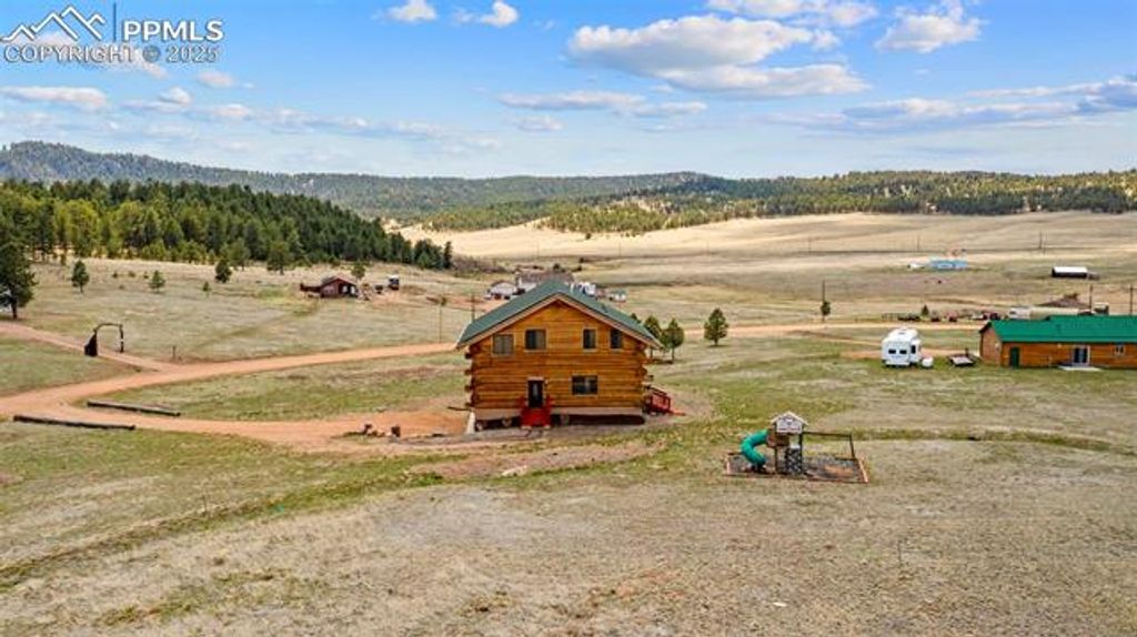 Welcome to your dream mountain retreat in the heart of the Rockies! This stunning 4-bedroom, 3-bathroom log cabin in Florissant, Colorado offers over 3,000 sq ft of rustic charm and modern comfort. Nestled on a serene lot with breathtaking views, this home is your perfect escape into Colorado's natural beauty. Step inside to soaring ceilings, warm wood finishes, and a spacious open floor plan perfect for entertaining or cozy nights in. The gourmet kitchen flows into the dining and living area, complete with a fireplace and picture windows that showcase the surrounding scenery. Outside, unwind in the private hot tub, enjoy the wraparound deck, and take in the peaceful mountain vibes. The oversized 4-car stand-up garage has plenty of room for all your toys, tools, or workshop needs. Whether you're looking for a full-time home, vacation getaway, or short-term rental opportunity"”this one checks all the boxes. Don't miss your chance to own this piece of Colorado paradise!