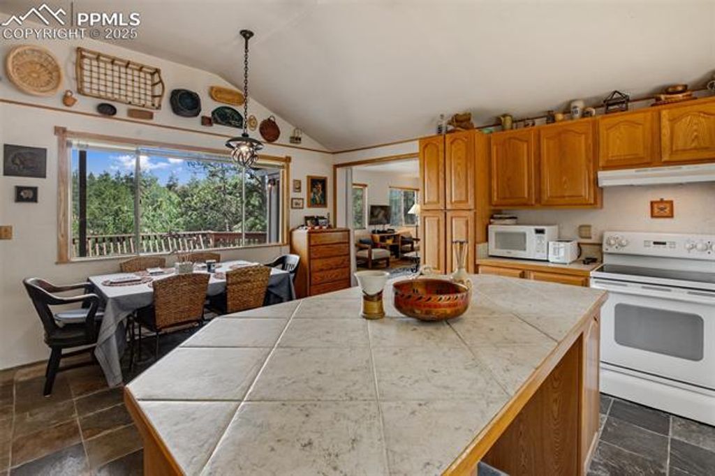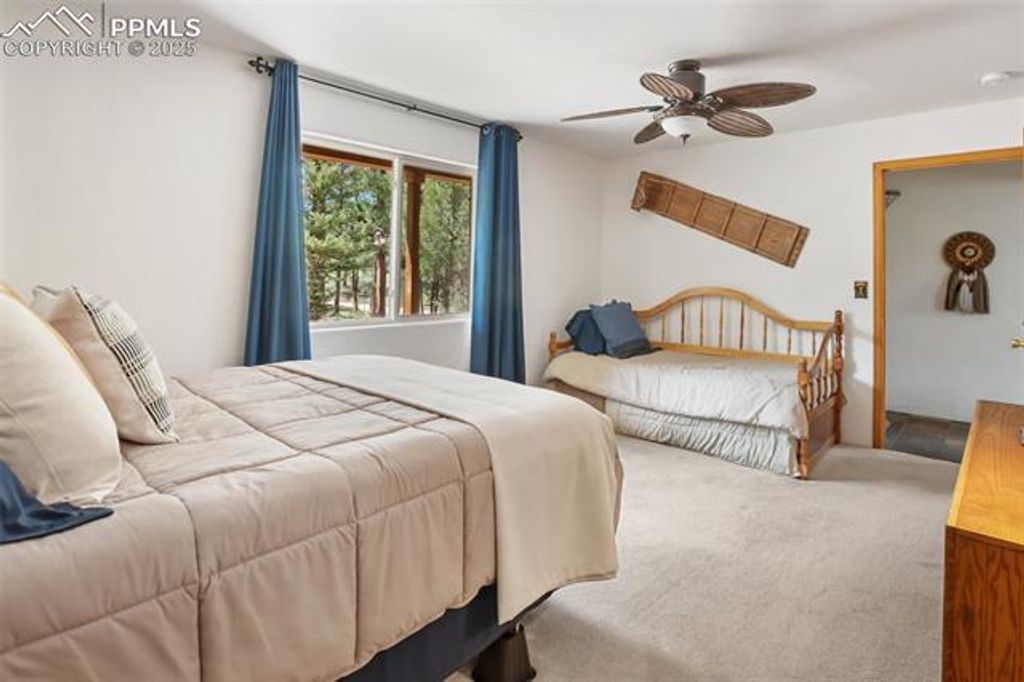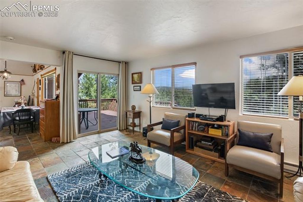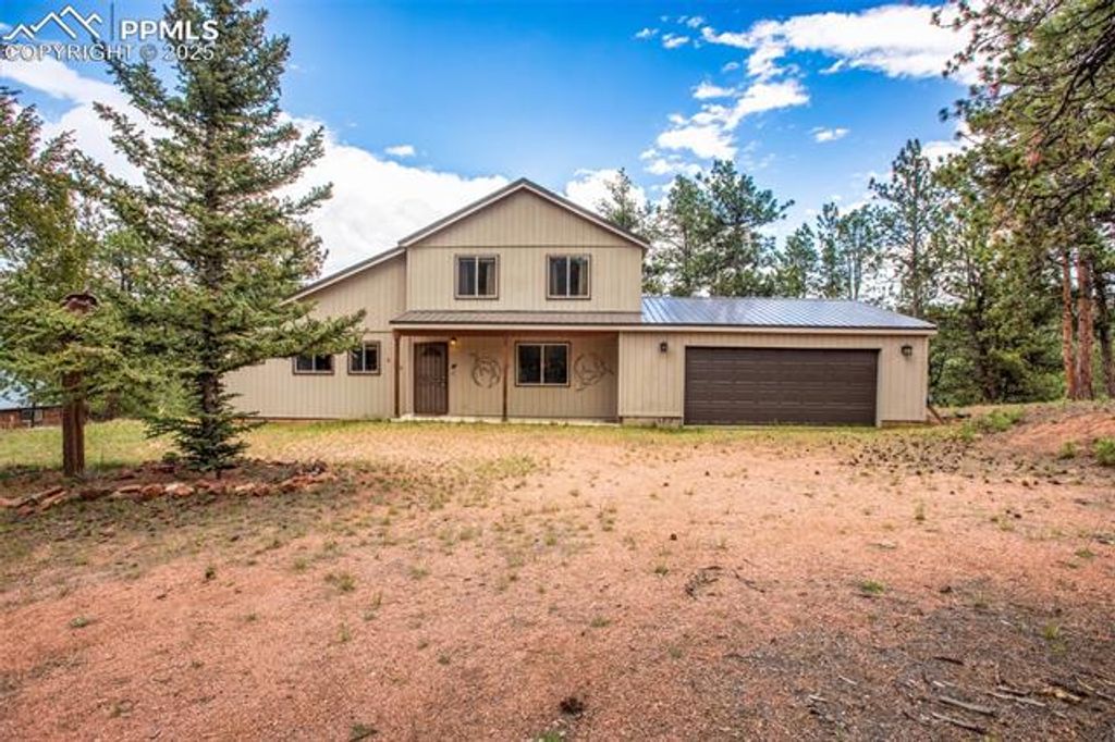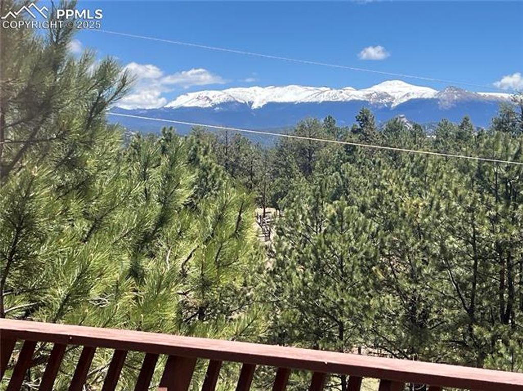 Lovely home on 1.93 treed acres! BIG Pikes Peak views from the deck, kitchen/dining area, living room and primary bedroom. Great floor plan with spacious rooms and lots of windows that provide plenty of natural lighting. There is tile flooring on the main level and all the bedrooms have carpet. Hardi board siding and a metal roof provide a low maintenance home. The two car attached garage is level with the home. The deck provides a private setting over looking the wooded lot and the mountains. This home was loved by a family for many years and is just waiting for a new buyer to love it. It's situated a ways off of the road providing privacy. The lot is all usable and has lots of mature pines. A recent appraisal was completed and is available for serious buyers.