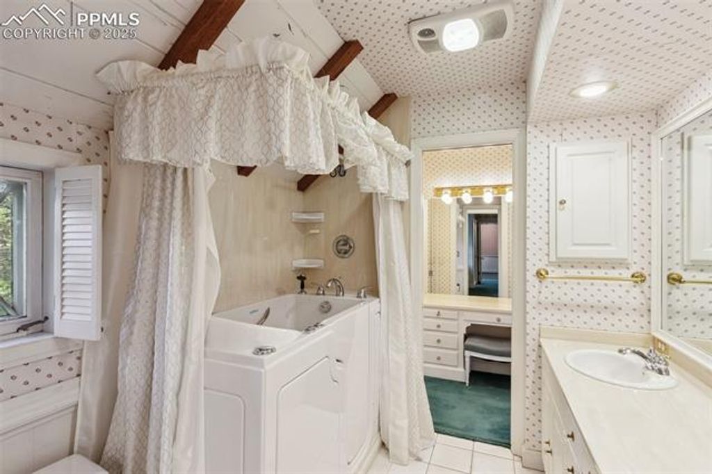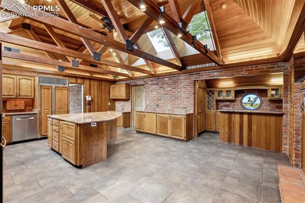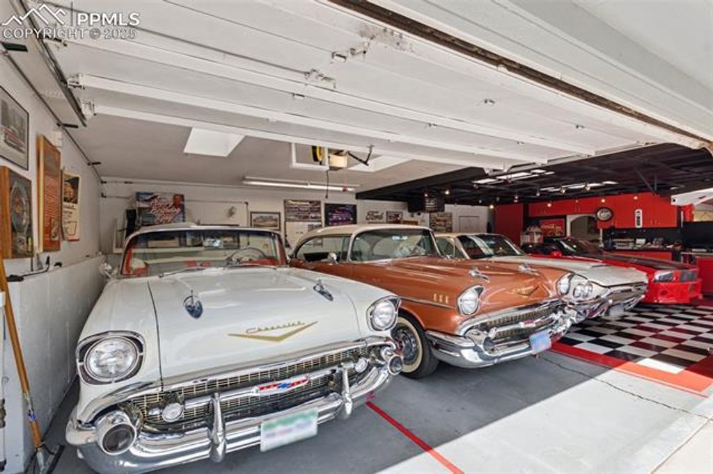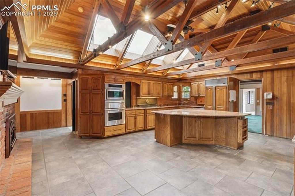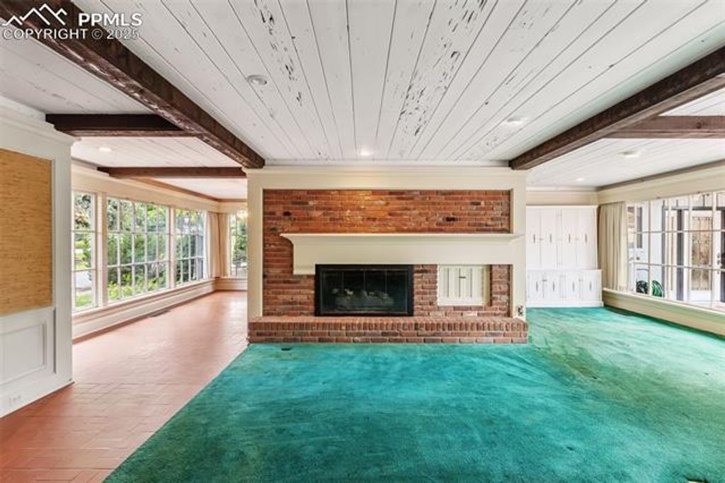 Welcome to this Broadmoor estate, nestled on 1.25 beautifully landscaped acres in one of Colorado Springs' most prestigious neighborhoods. Boasting an impressive pedigree with only two owners, as the home was built in 1958! Tucked within a quiet neighborhood, the home is accessed via a gated circular driveway, providing both seclusion and standout curb appeal. Car enthusiasts will appreciate the incredible 16-car garage capacity, a true rarity. Designed for effortless entertaining, the home features a stunning panoramic folding door system that seamlessly connects the family room to one of several patios, blurring the lines between indoor and outdoor living. The entertaining kitchenette in the family room makes hosting guests easy, while the patios open to lush, mature landscaping that feels like your own private park. At the heart of the home lies a spacious, light-filled kitchen, featuring granite countertops, a large island with breakfast bar, beamed ceilings, and multiple skylights. A cozy fireplace stove adds character and warmth to this space. The primary suite retreat has its own sitting room, private wet bar, and walk-out to a deck. The 5pc bath offers dual vanities, a walk-in tub, and a separate shower. Two additional bedrooms in this wing share a Jack-and-Jill bathroom. The living and dining rooms each showcase their own fireplace, providing spaces for gathering. An office/study off the kitchen includes extensive built-ins and another fireplace stove, creating a productive workspace. A separate wing features an additional bedroom, a three-quarter bath, and access to an upstairs playroom, perfect for children, hobbies, or additional guests. With six fireplaces, and exceptional outdoor living spaces, this one-of-a-kind estate is a Broadmoor legacy, offering a truly coveted location.