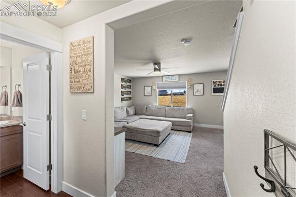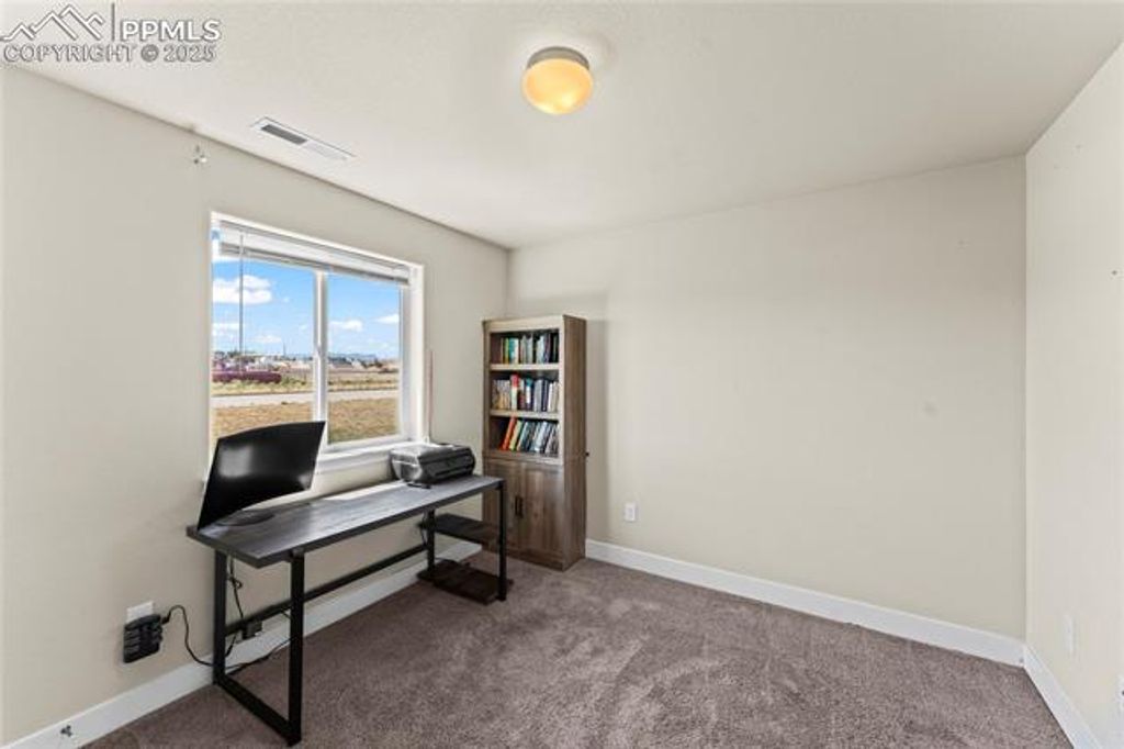 Spacious 4-bed, 4-bath, 3-car garage home built in 2020 with a finished basement featuring a family room, bedroom, and ¾ bath. Enjoy Front Range mountain views from the back of the home and an open-concept kitchen with granite countertops that flows into the bright living area. Upstairs, you'll find generously sized bedrooms and a comfortable primary suite. The fully fenced, low-maintenance backyard is perfect for relaxing or entertaining, and permanent Gemstone lighting adds a special touch year-round. Conveniently located near shopping, groceries, restaurants, and services at Marksheffel and Constitution, and just a short drive to Peterson Air Force Base and Schriever Space Force Base.